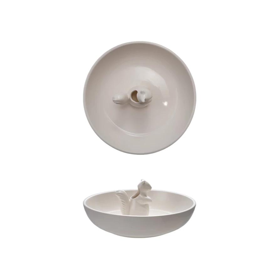 Catalog Name: 8" Round x 3-1/2"H Stoneware Bowl w/ Squirrel Shaped Toothpick Holder, White