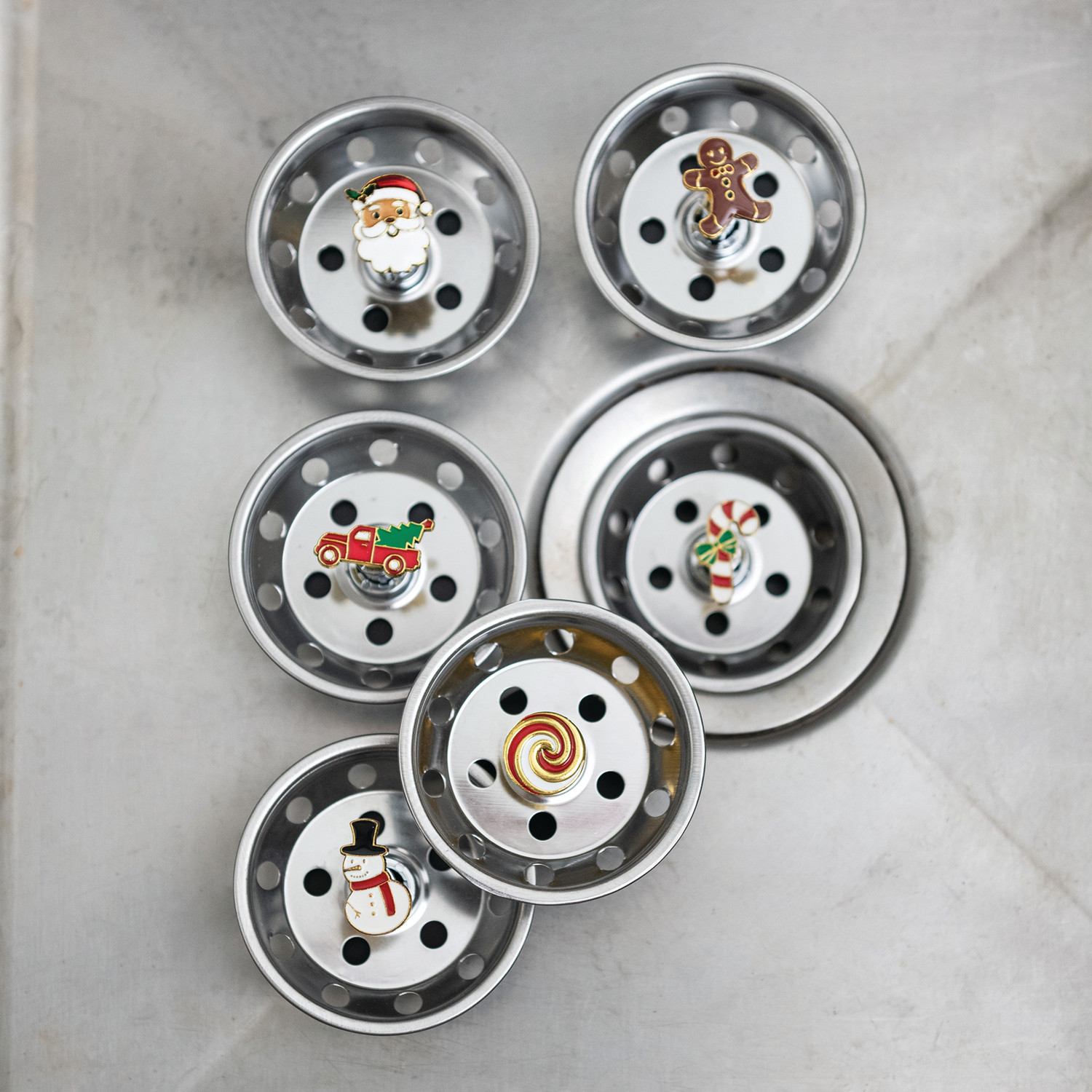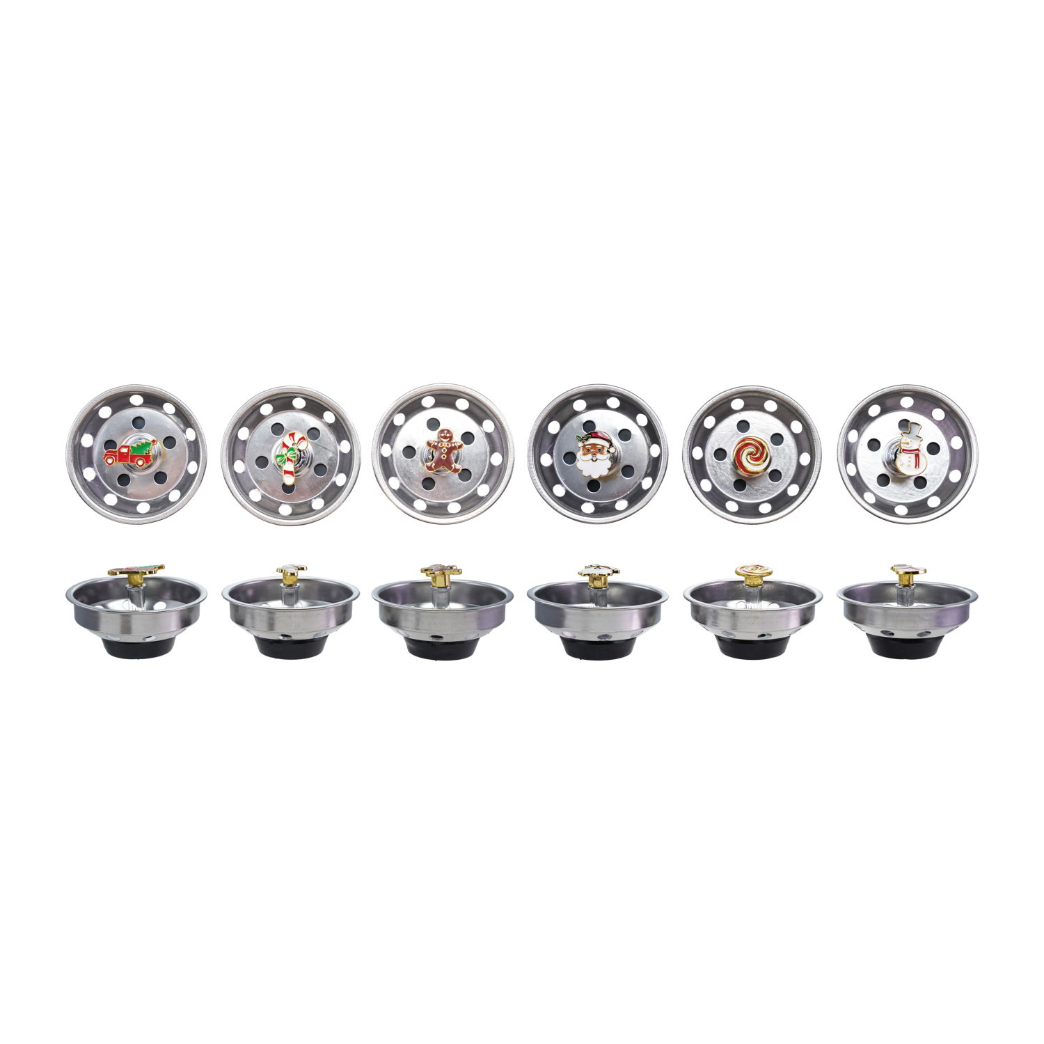 Catalog Name: 3-1/4" Round x 2"H Stainless Steel Sink Strainer w/ Holiday Icon, Multi Color, 6 Styles