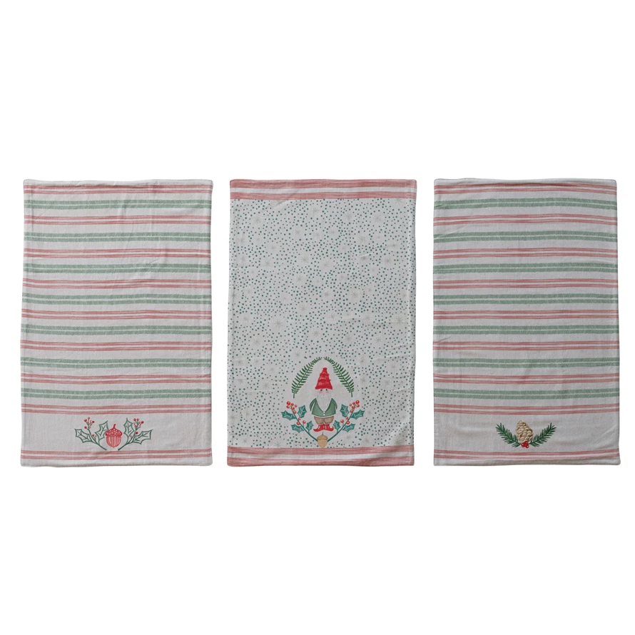 Catalog Name: 28"L x 18"W Printed Tea Towel w/ Woodland Holiday Image/Pattern, Embroidery & Terry Cloth Back, Multi Color, 3 Styles ©