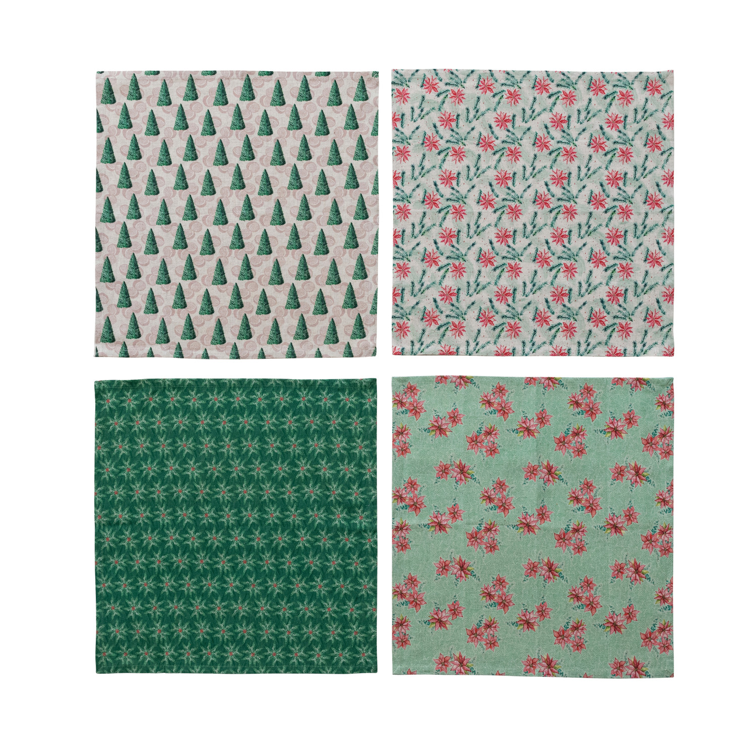 Napkins with Botanical Patterns, Set of 4 Tied with Jute String ©