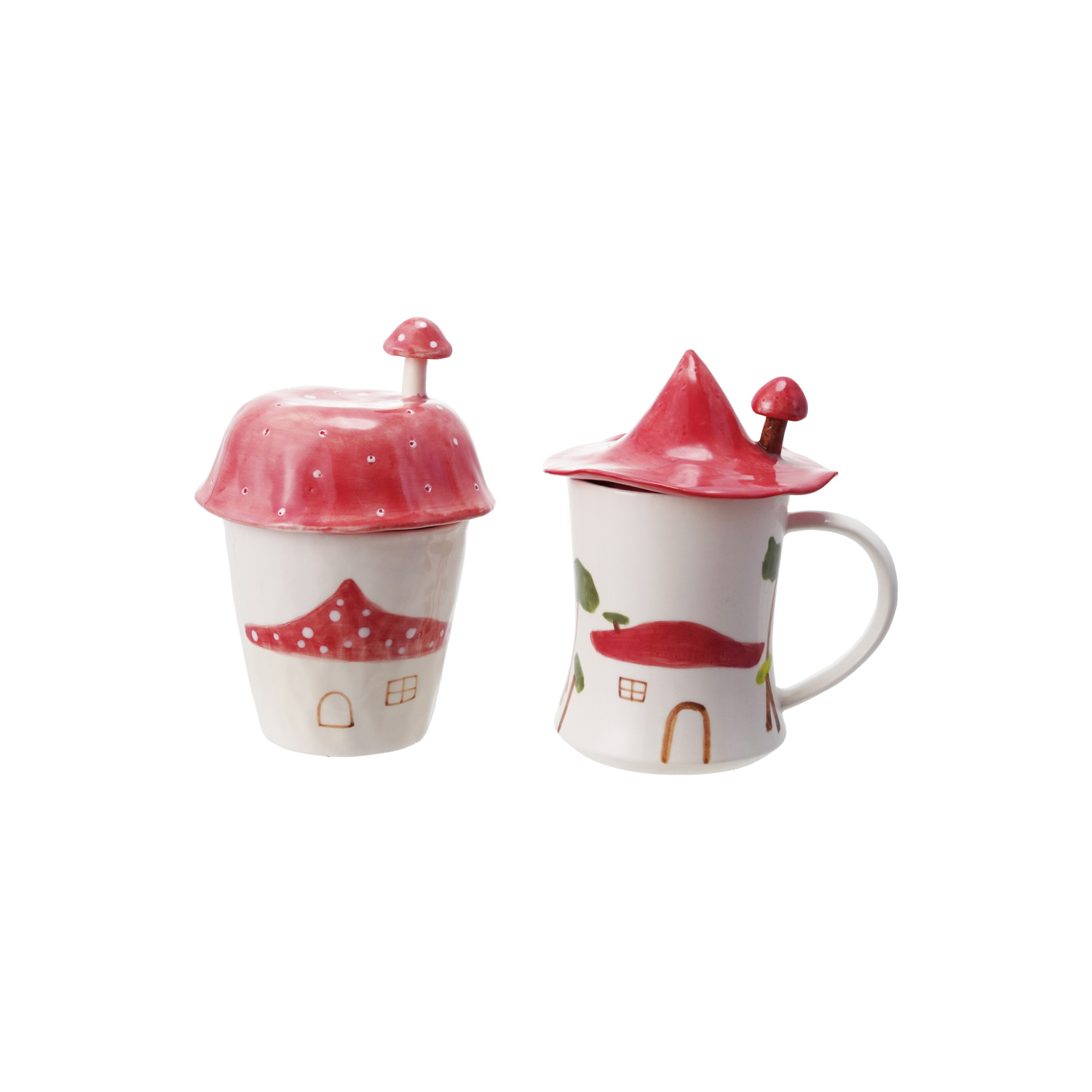 10 oz. Stoneware Mug with Mushroom Shaped Lid, Set of 2, 2 Styles