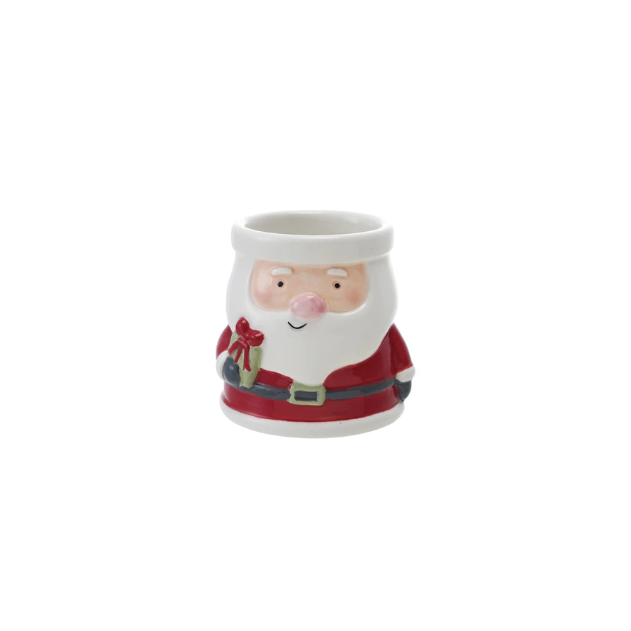 Catalog Name: 2-1/2" Round x 2-1/2"H Hand-Painted Ceramic Santa Shaped Container, Multi Color