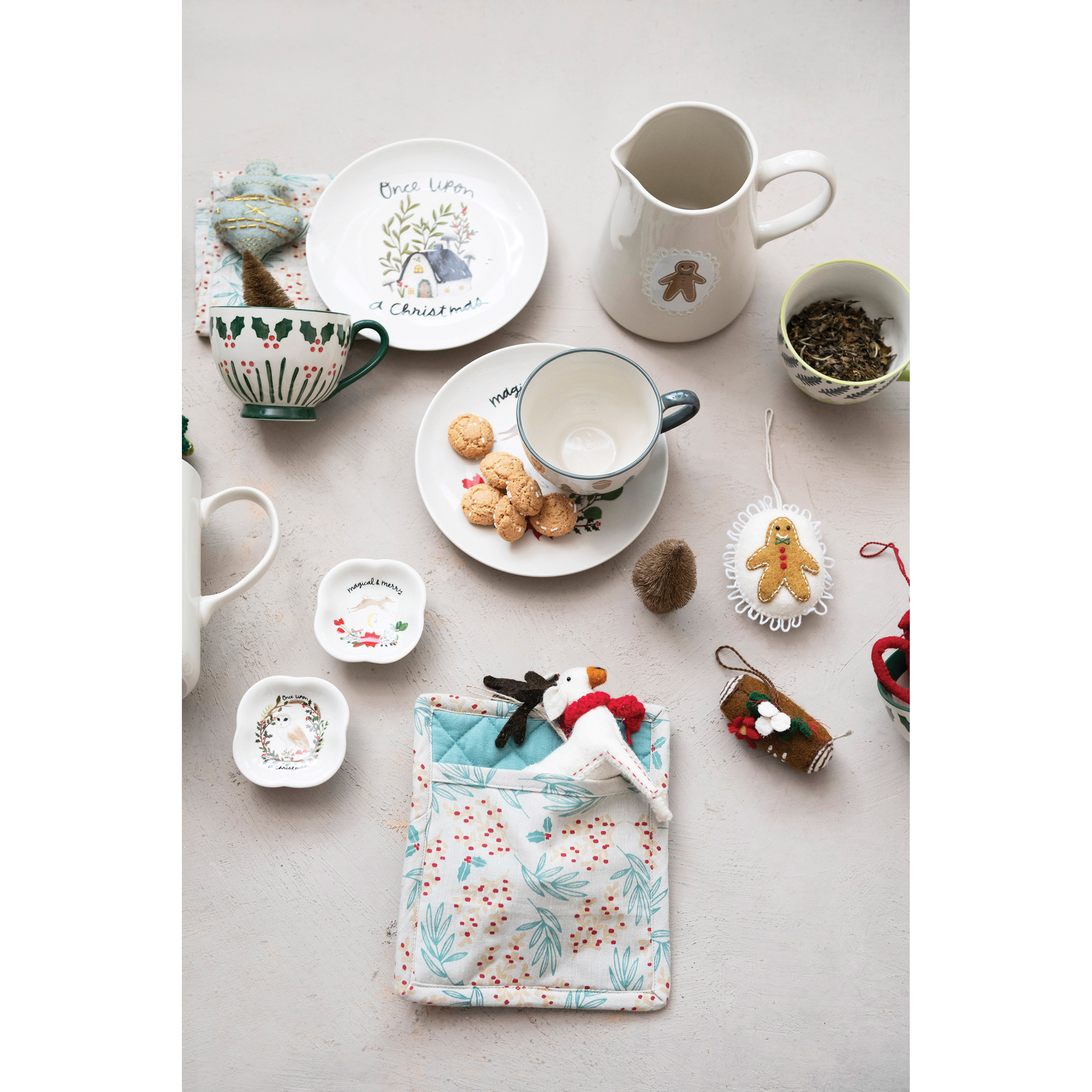 Stoneware Pedestal Dish with Forest Animal and Holiday Saying, 2 Styles