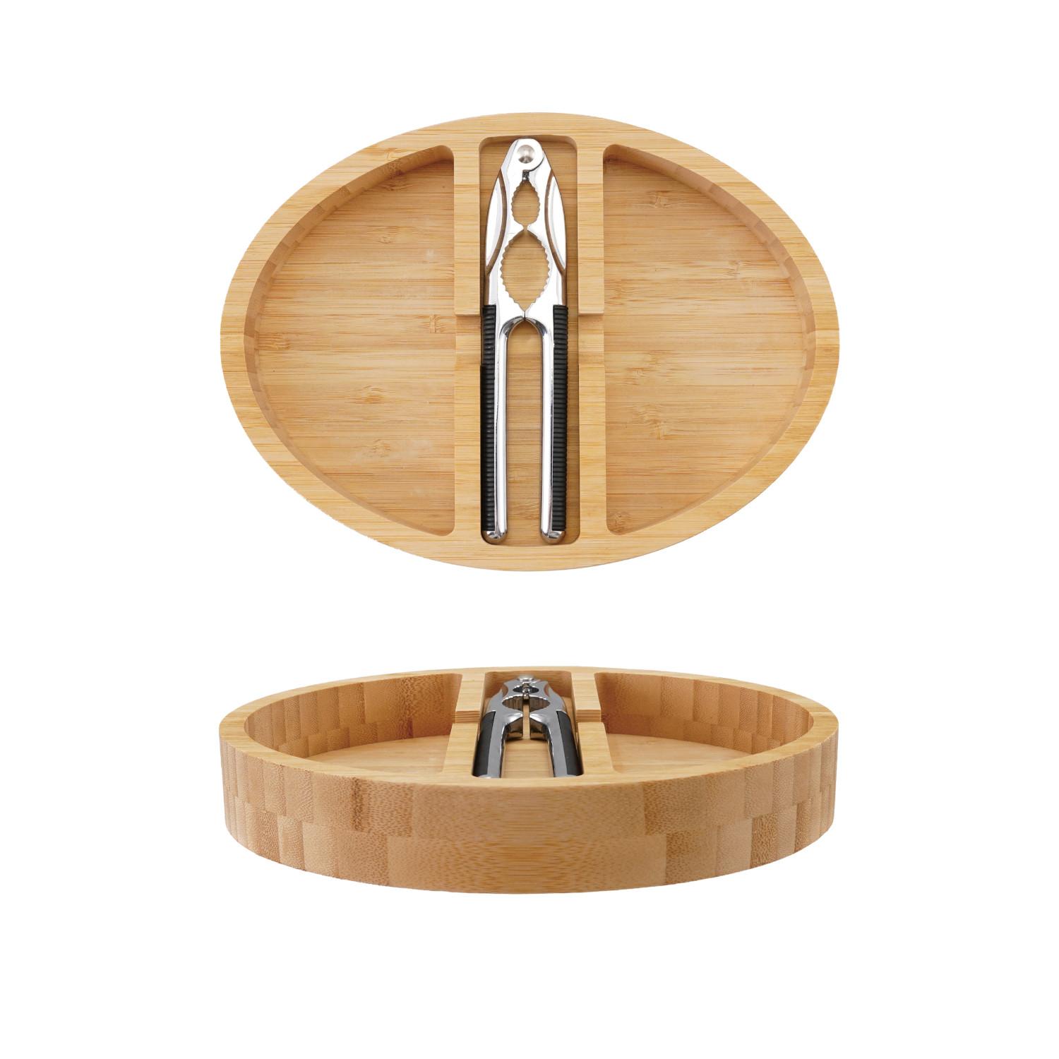 Catalog Name: 9-3/4"L x 7-1/4"W Bamboo Tray w/ 2 Sections & 6-1/2"L Zinc Alloy Nut Cracker, Natural, Set of 2
