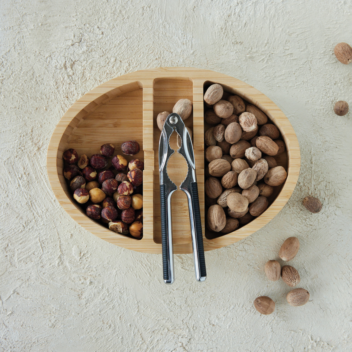 Bamboo Tray with 2 Sections & 6-1/2"L Zinc Alloy Nut Cracker, Natural, Set of 2