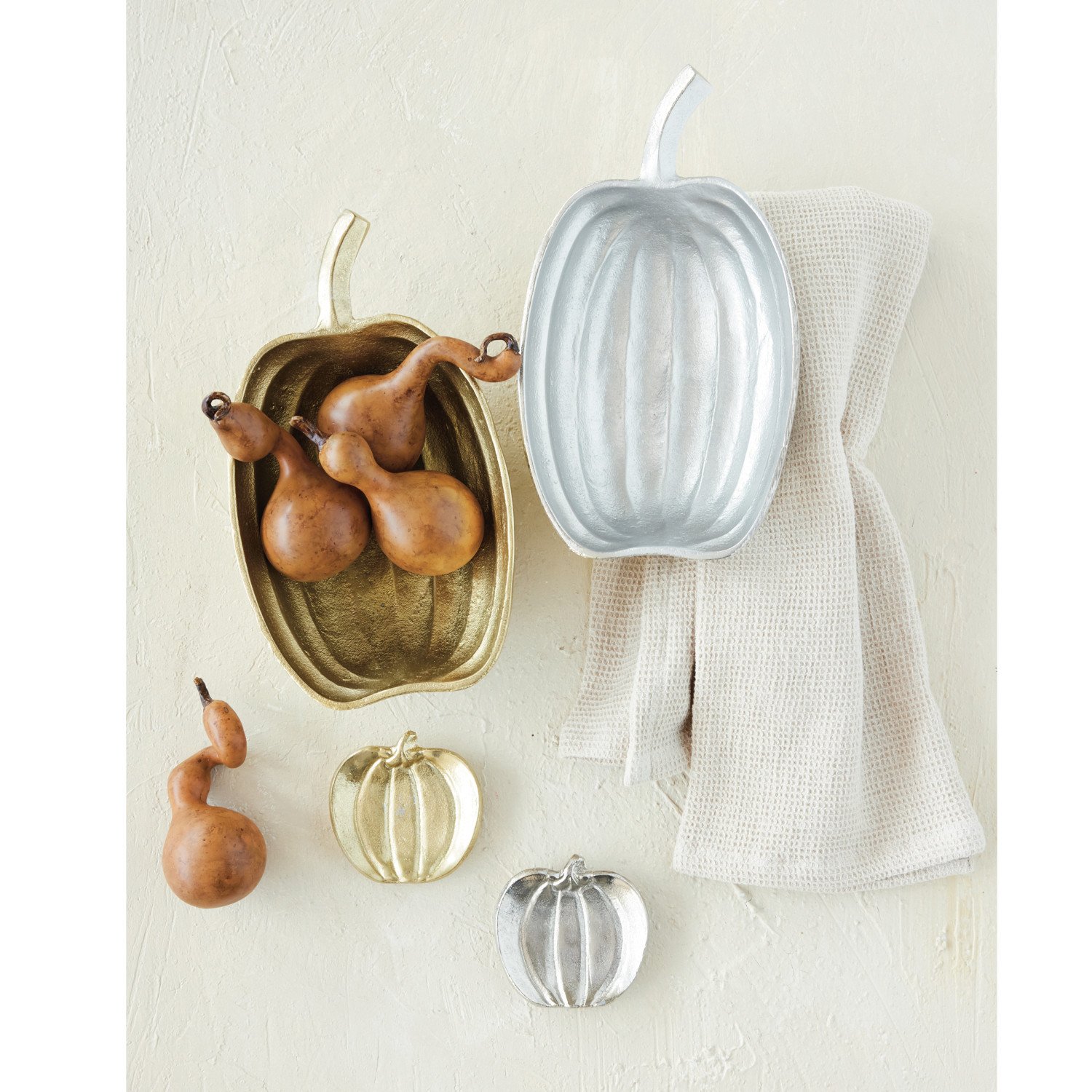 Catalog Name: 10-1/4"L x 5-3/4"W x 2-1/2"H Cast Aluminum Pumpkin Shaped Bowl, Nickel Finish