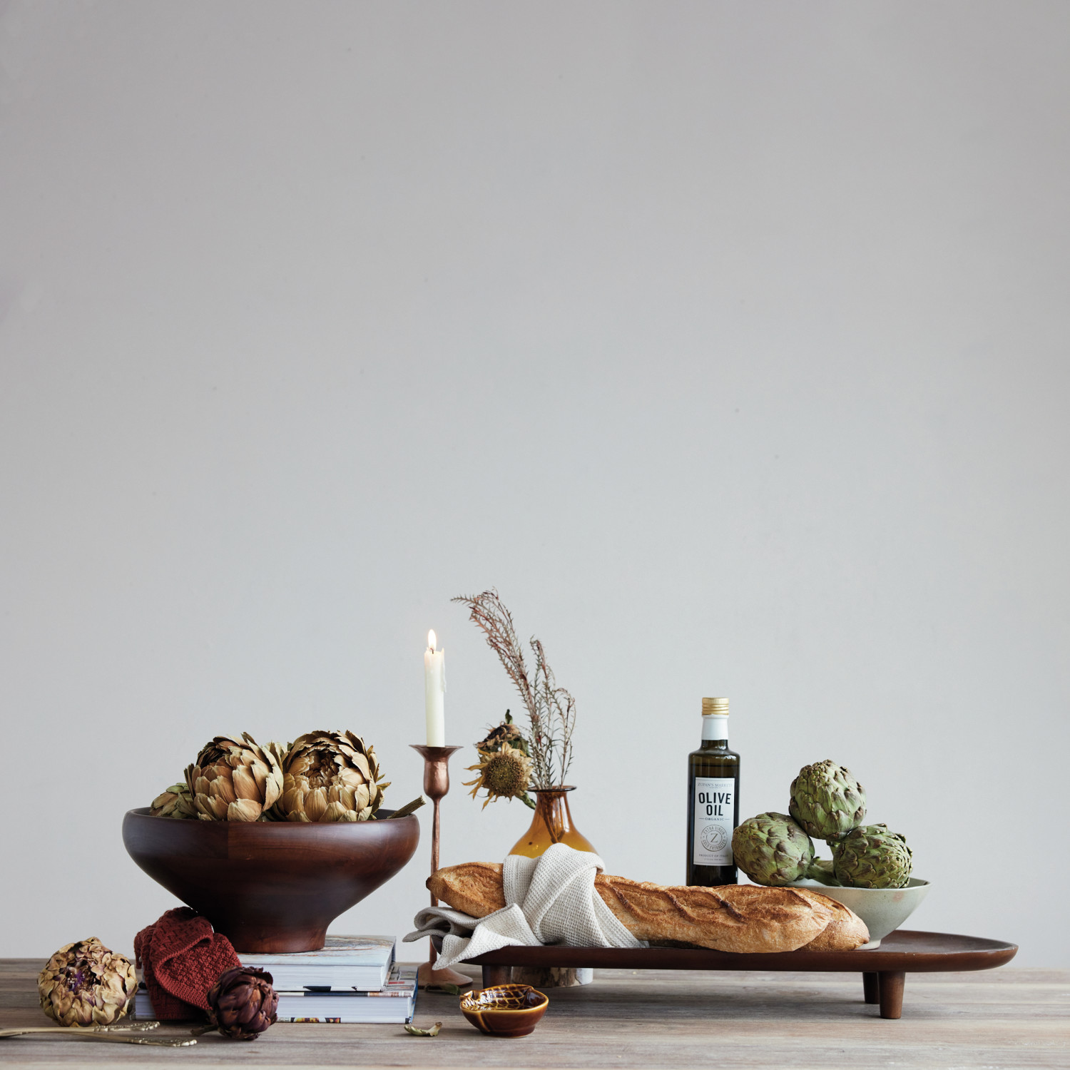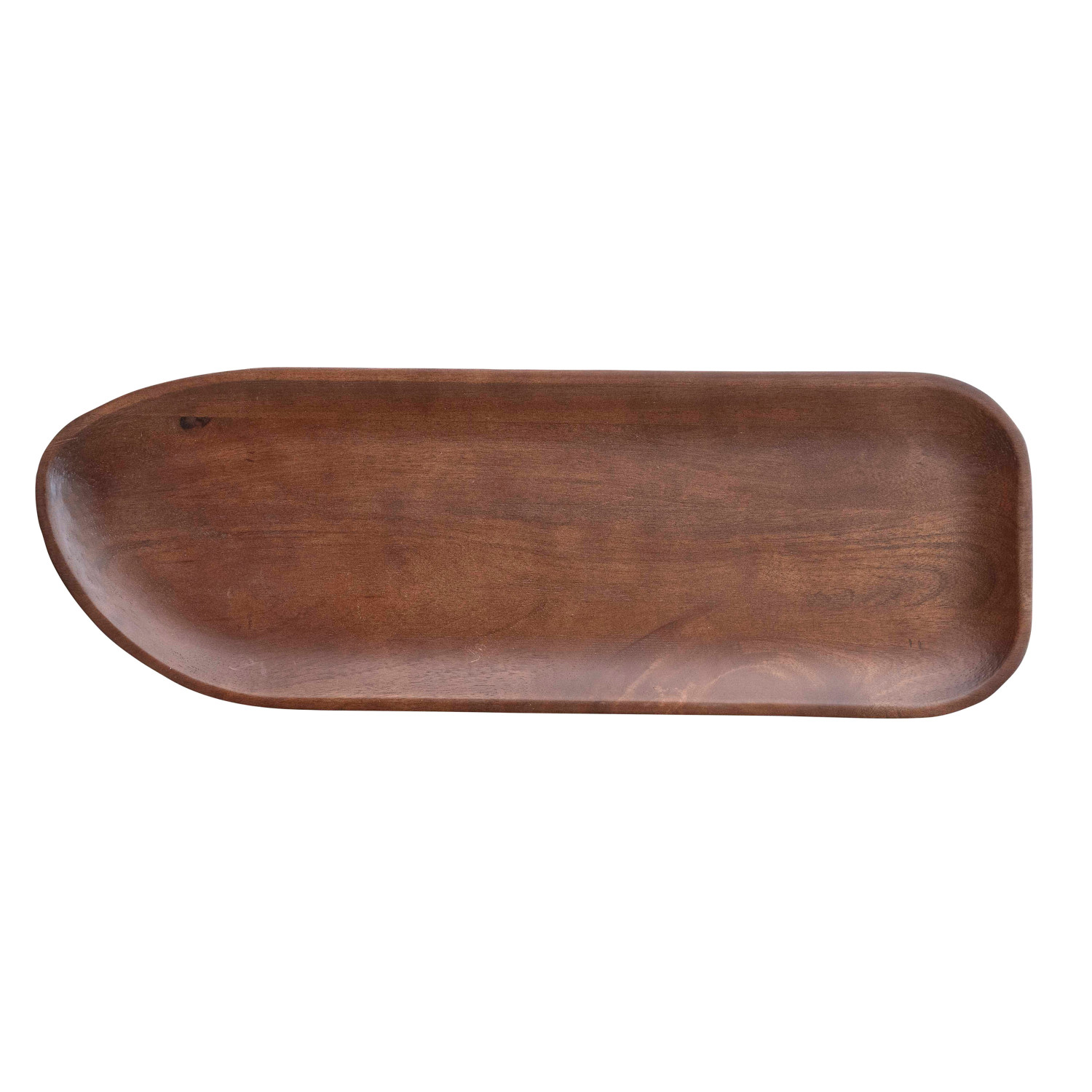 Catalog Name: 26"L x 9"W x 3"H Mango Wood Organic Shaped Footed Tray, Walnut Finish