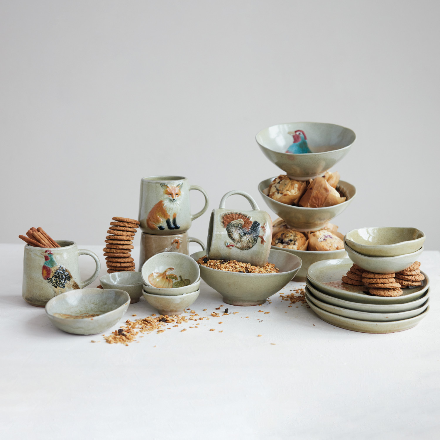 Hand-Painted Stoneware Dish with Animal/Pumpkins, 4 Styles (Each One Will Vary)