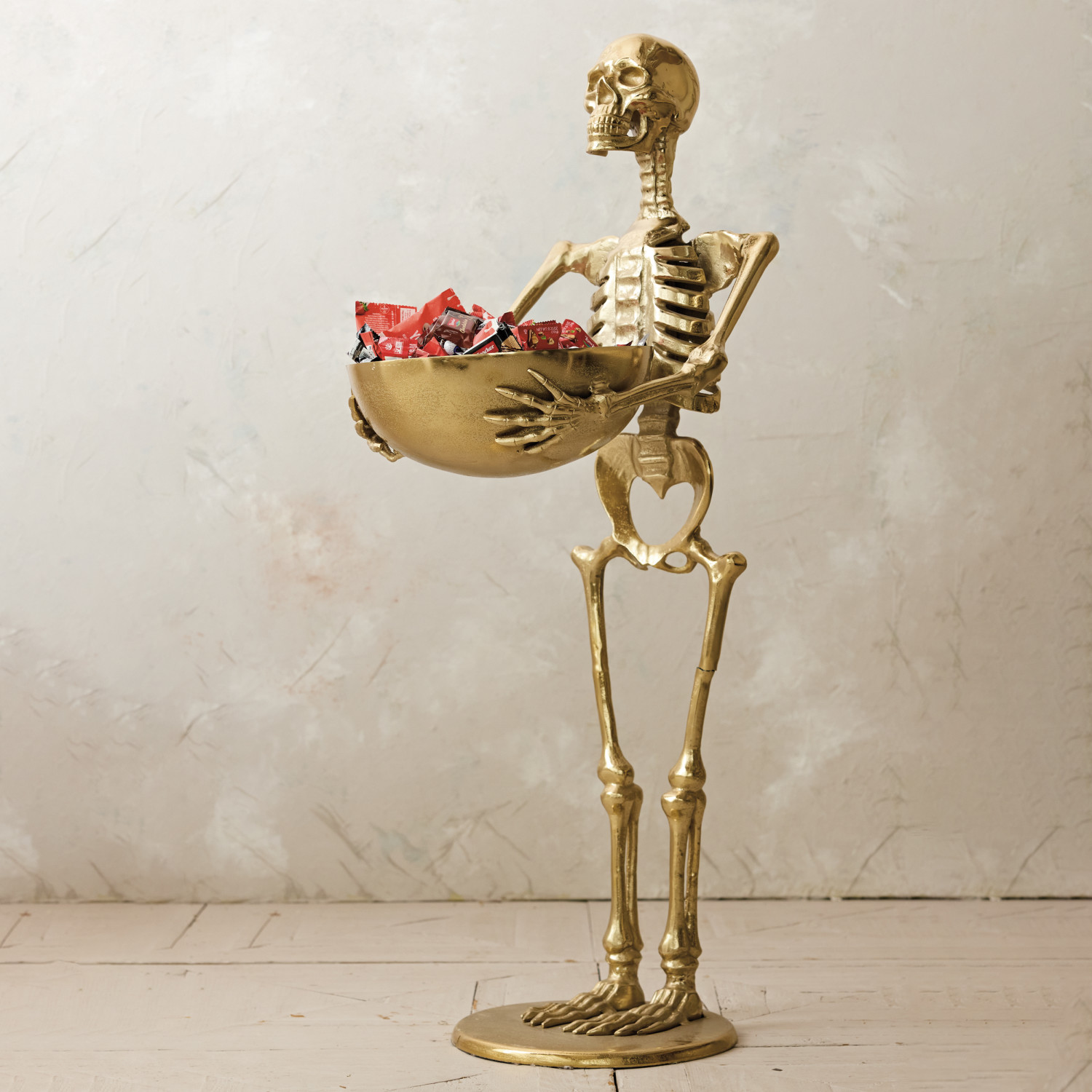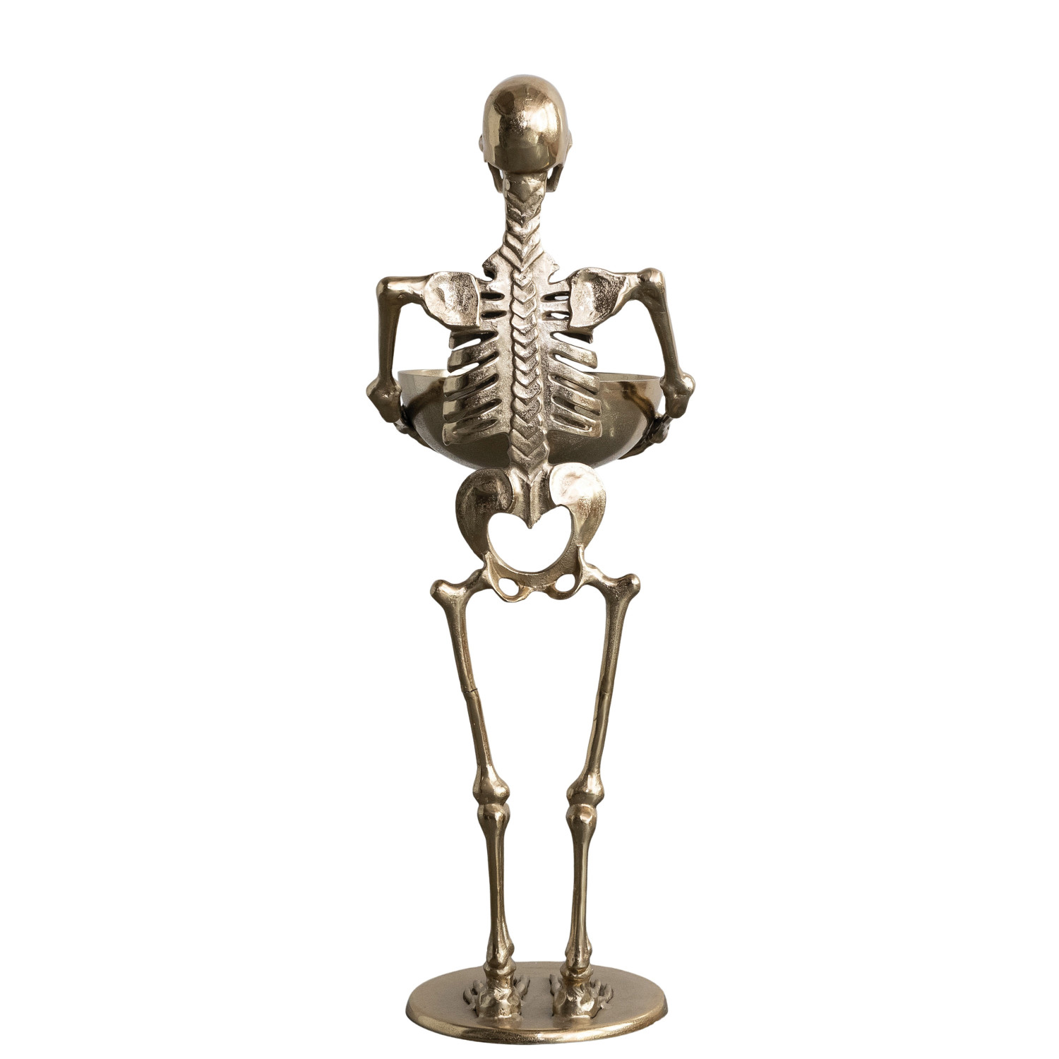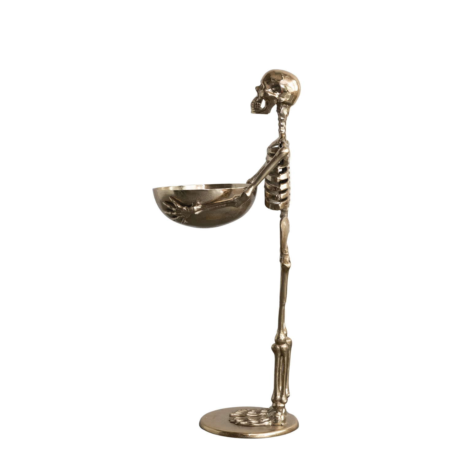 Cast Aluminum Skeleton Holding Bowl, Gold Finish
