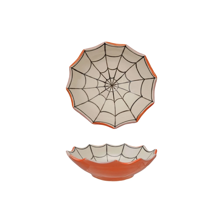 Stoneware Spider Web Shaped Bowl, Orange Color, White & Black ©