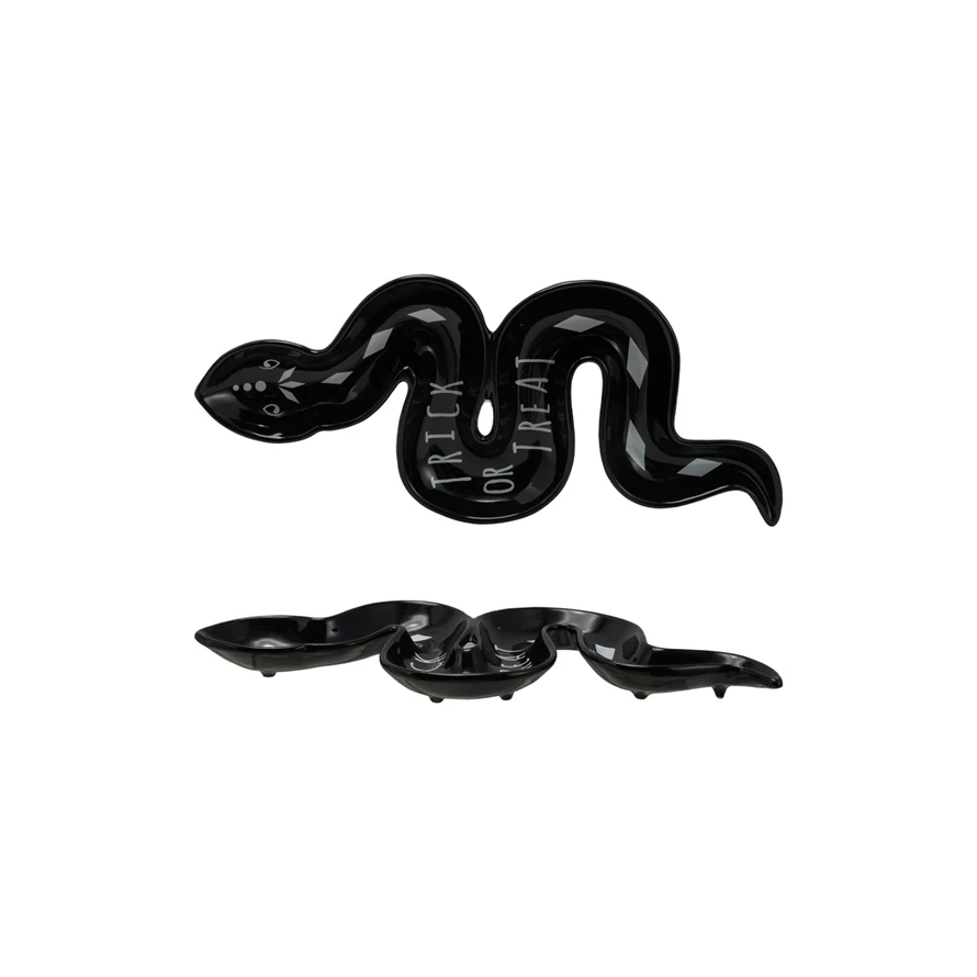 1Ceramic Snake Shaped Dish "Trick Or Treat", Black & Grey