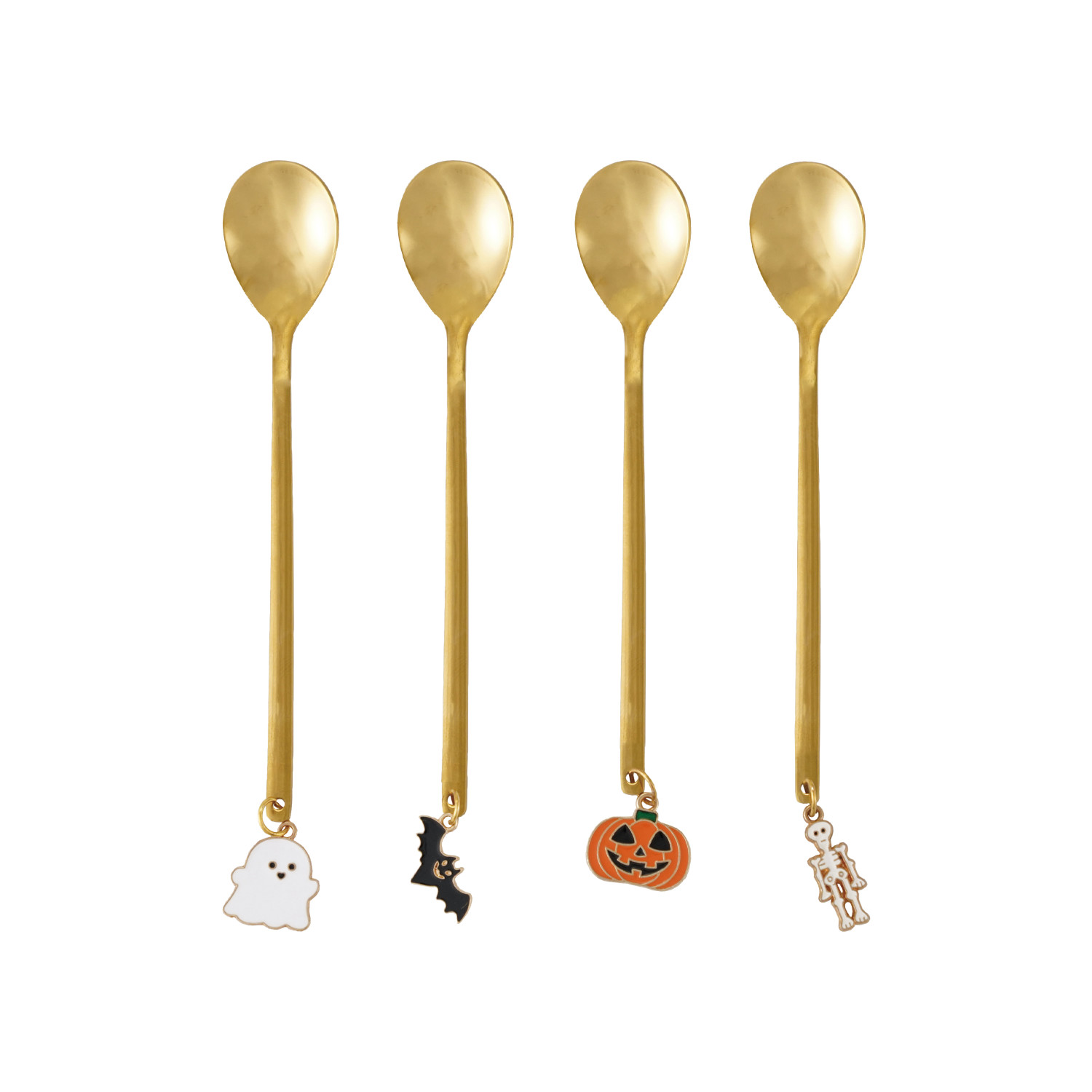 Stainless Steel Spoon with Enameled Halloween Charm, Brass Finish, 4 Styles