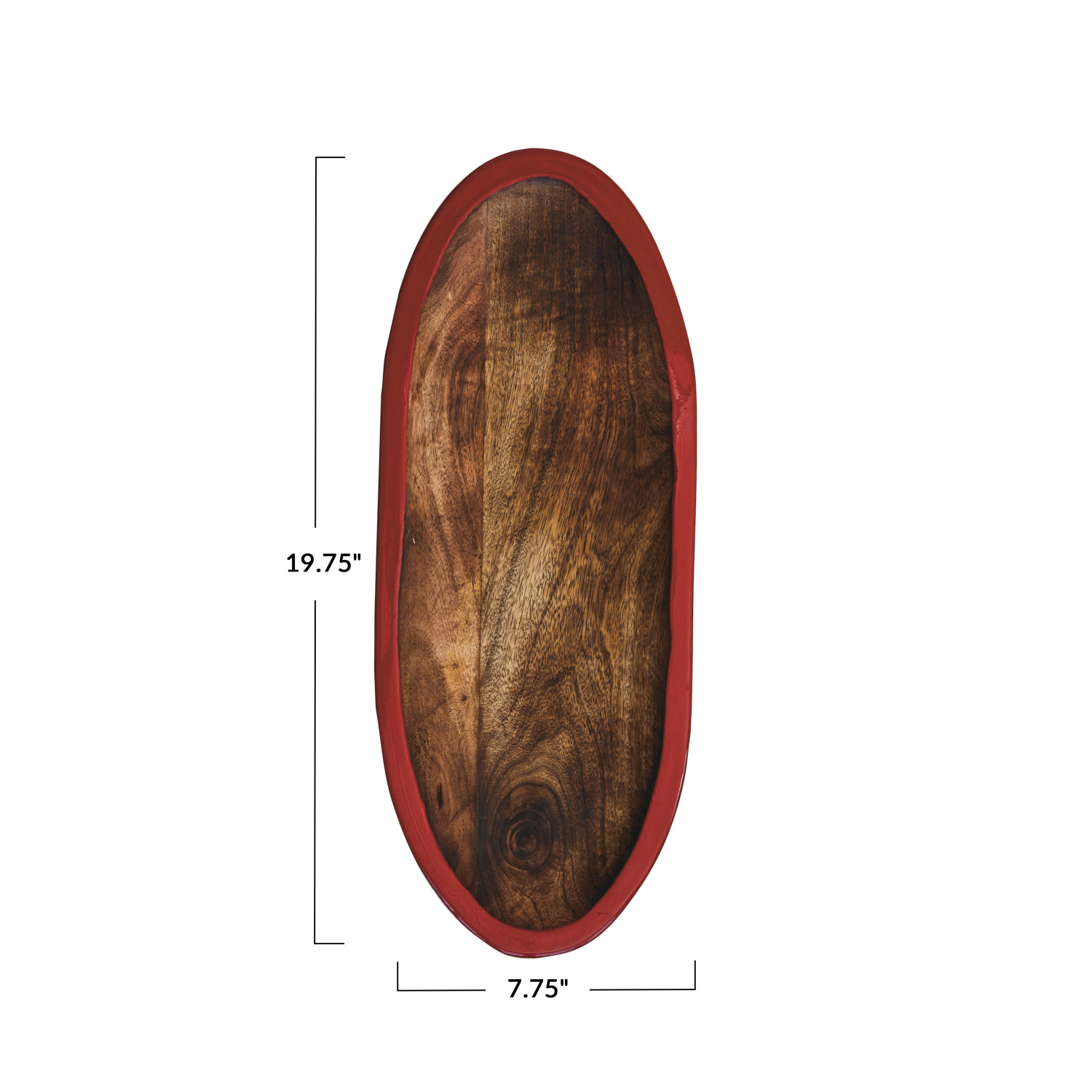 Catalog Name: 19-3/4"L x 7-3/4"W Oval Hand-Carved Mango Wood Tray w/ Enameled Edge, Walnut Finish, Red
