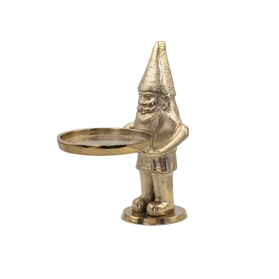 Cast Aluminum Gnome Holding Tray, Gold Finish