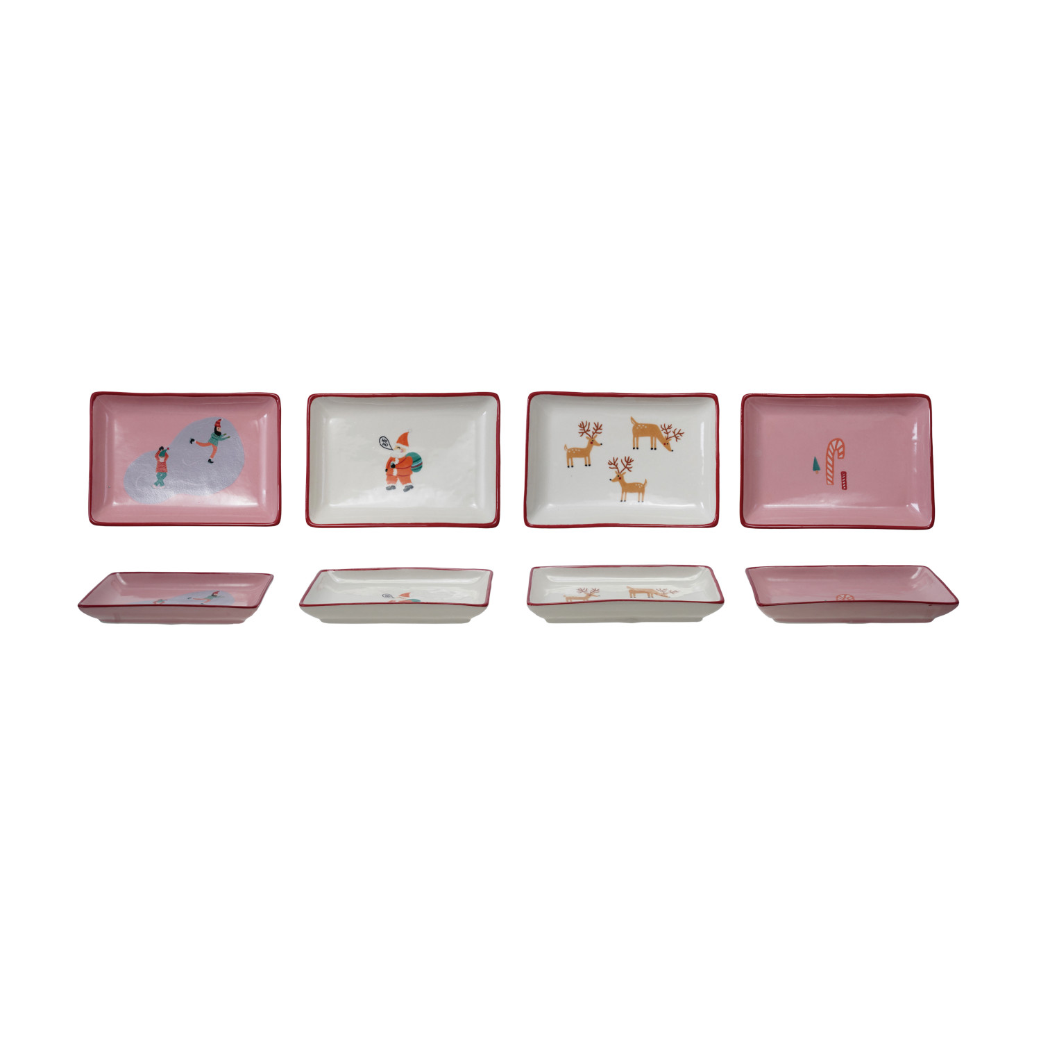 Catalog Name: 5-3/4"L x 4-1/4"W Stoneware Dish w/ North Pole Pattern & Red Rim, Multi Color, 4 Styles ©