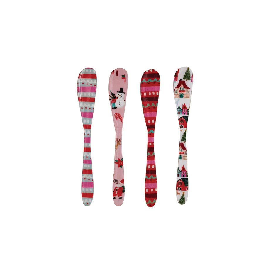 Catalog Name: 5-3/4"L Enameled Stainless Steel Canape Knife w/ North Pole Pattern, Multi Color, 4 Styles ©