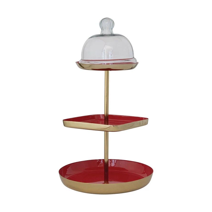 Enameled Metal 3-Tier Tray with Glass Cloche, Set of 2, KD