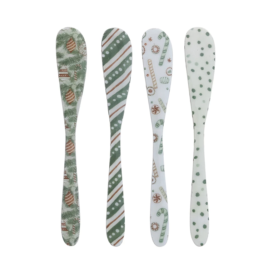 Catalog Name: 5-3/4"L Enameled Stainless Steel Canape Knife w/ Holiday Pattern, Multi Color, 4 Styles ©