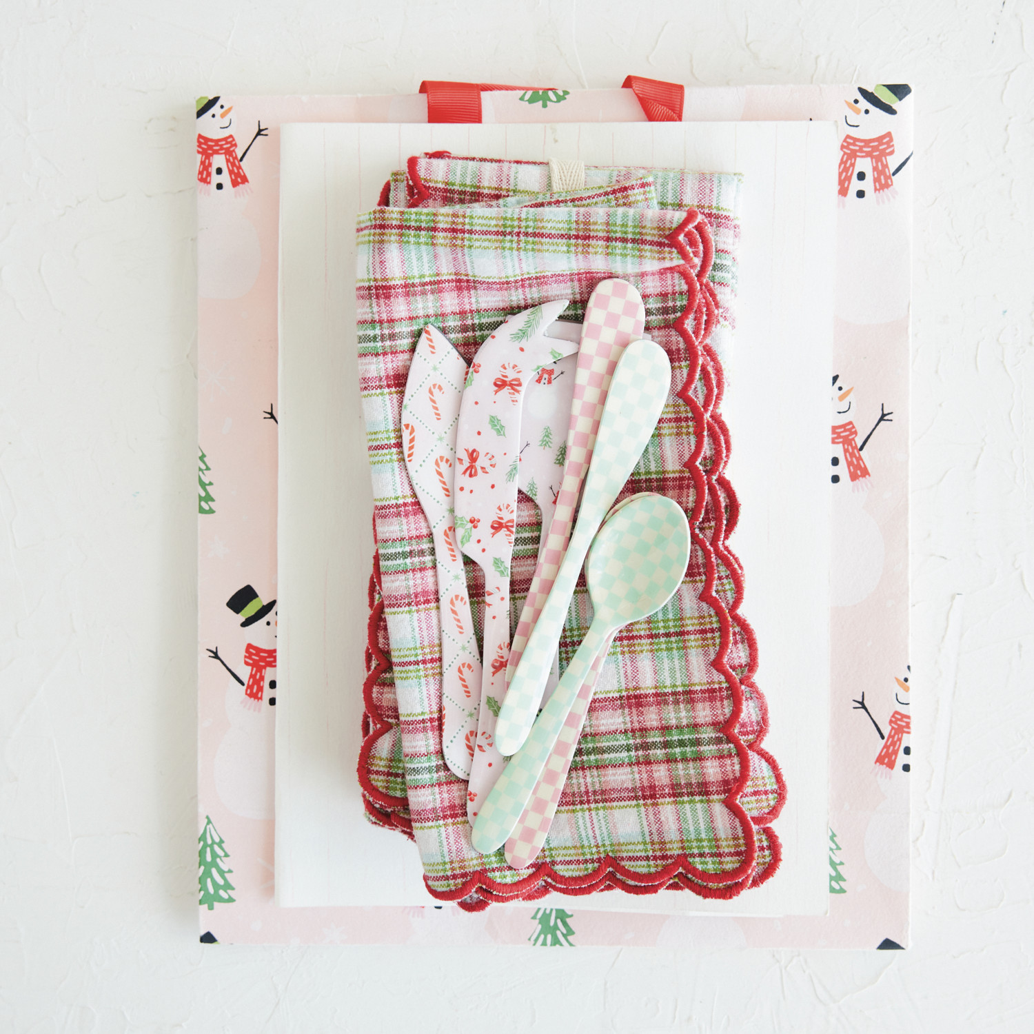 Catalog Name: 5-3/4"L Enameled Stainless Steel Canape Knife w/ Check Pattern, 2 Colors