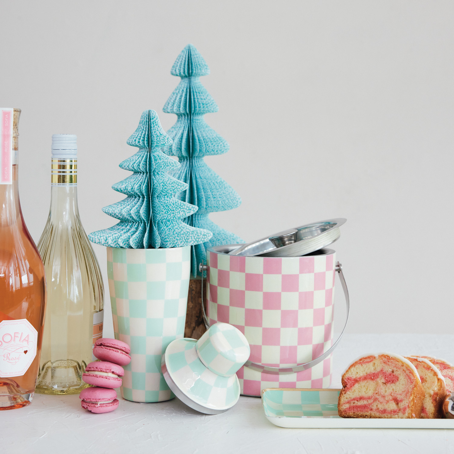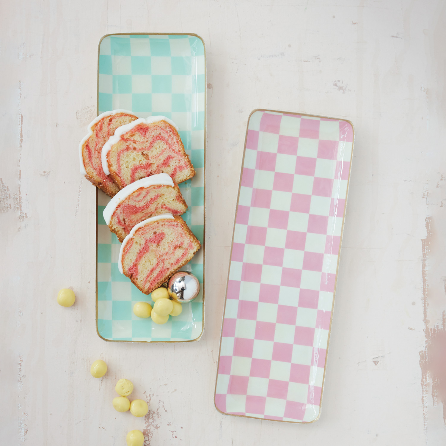 Enameled Metal Tray with Check Pattern & Gold Edges, 2 Colors