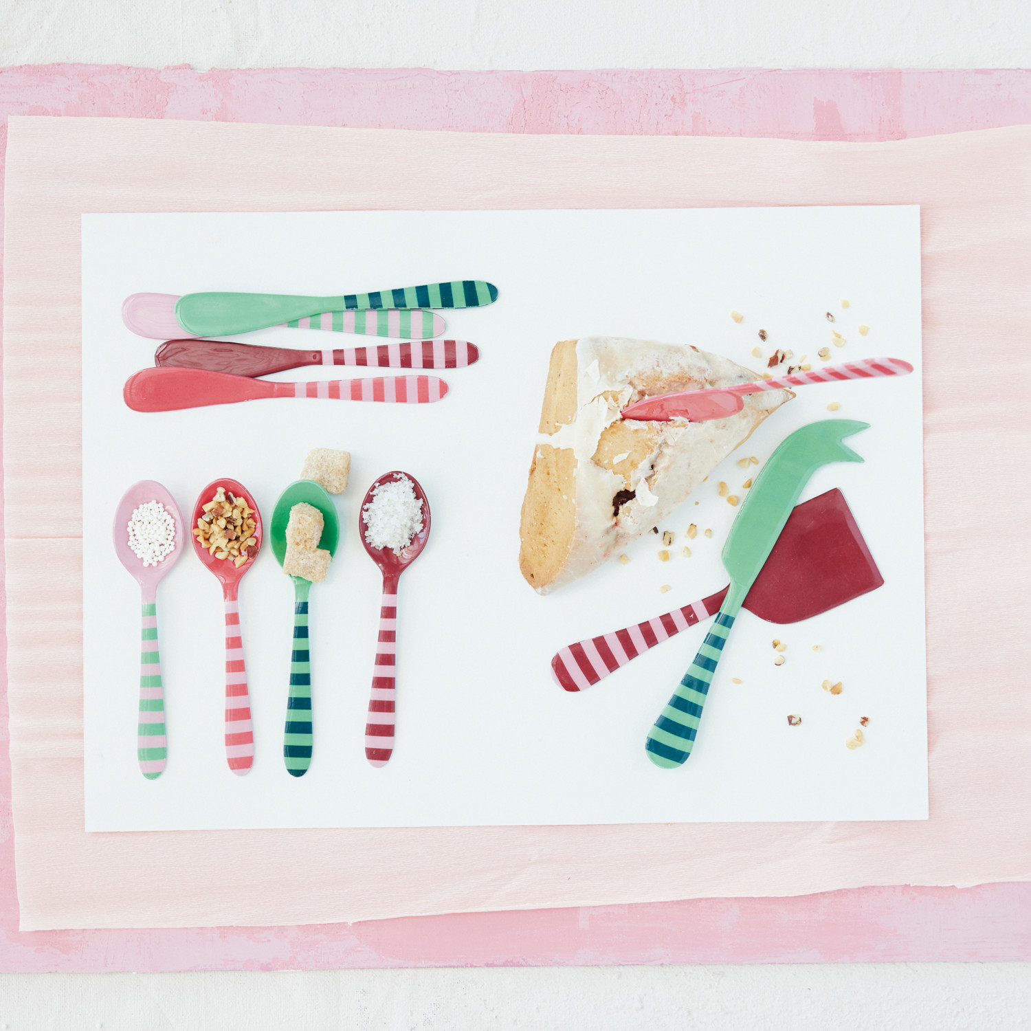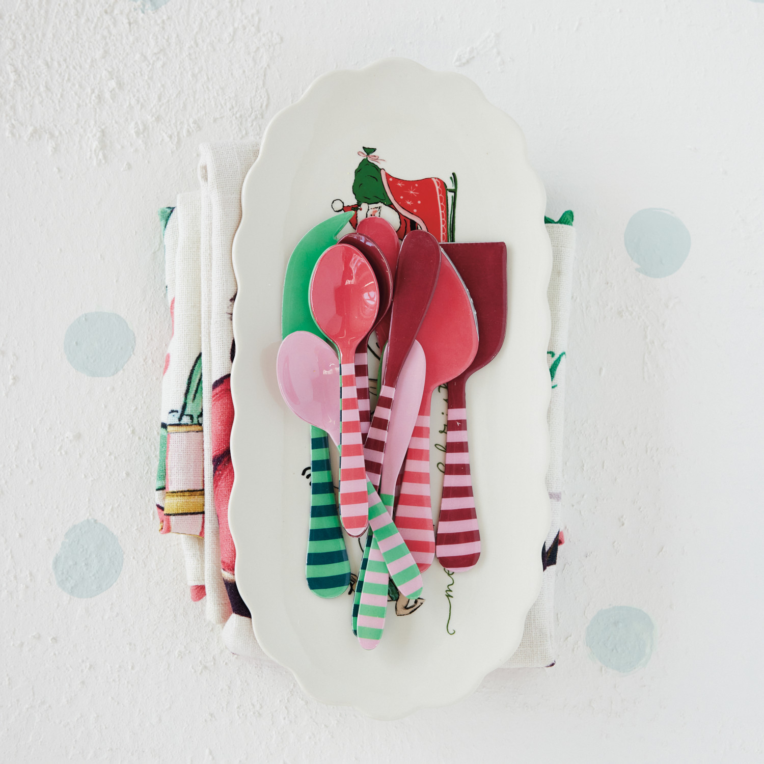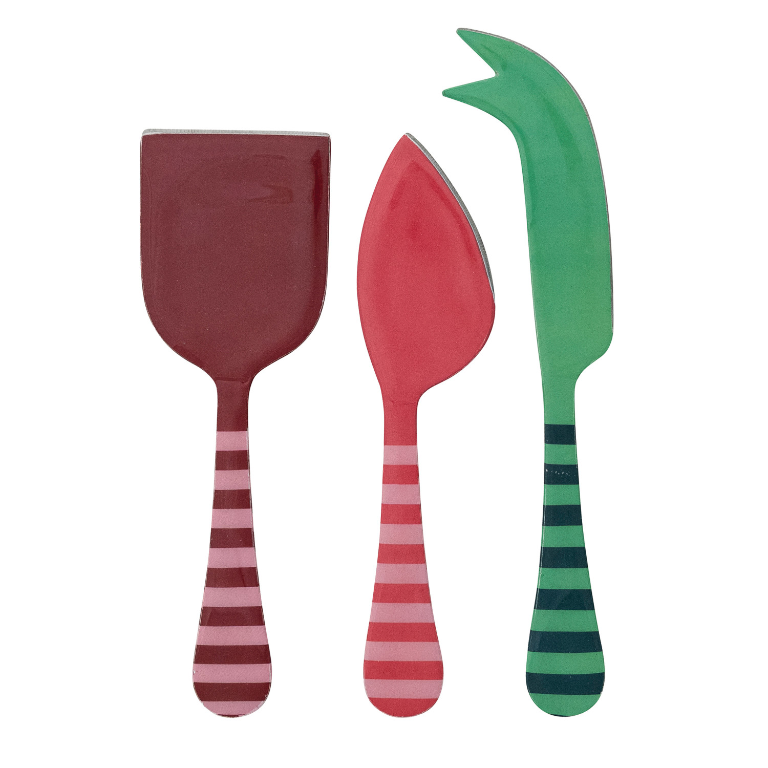 Enameled Stainless Steel Cheese Knives with Striped Handles, Set of 3