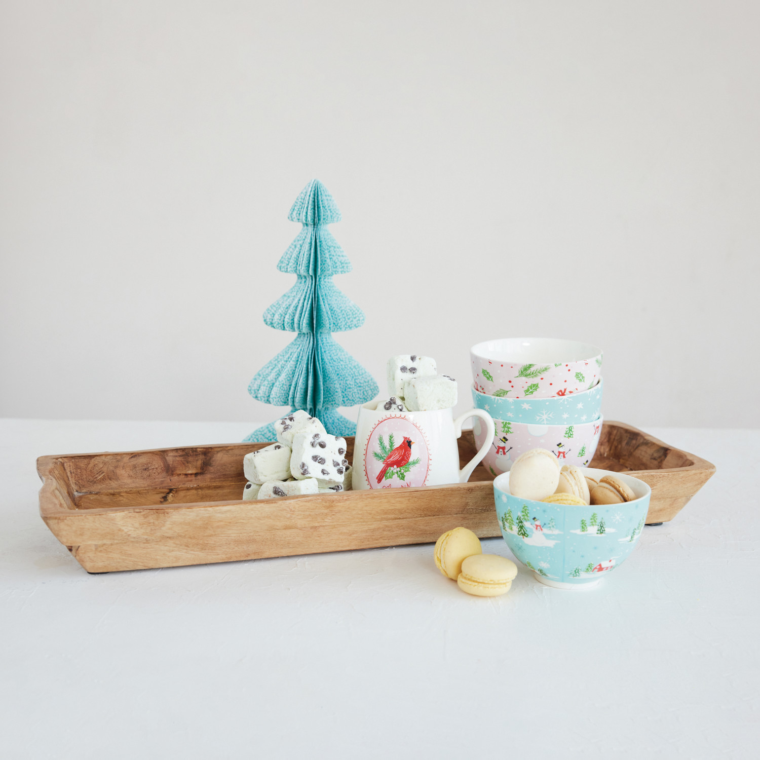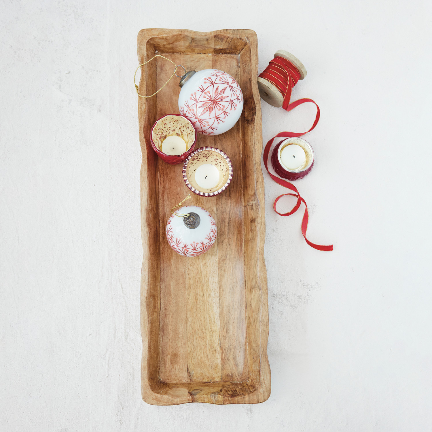 Catalog Name: 22-1/2"L x 7-1/2"W Hand-Carved Mango Wood Tray, Natural