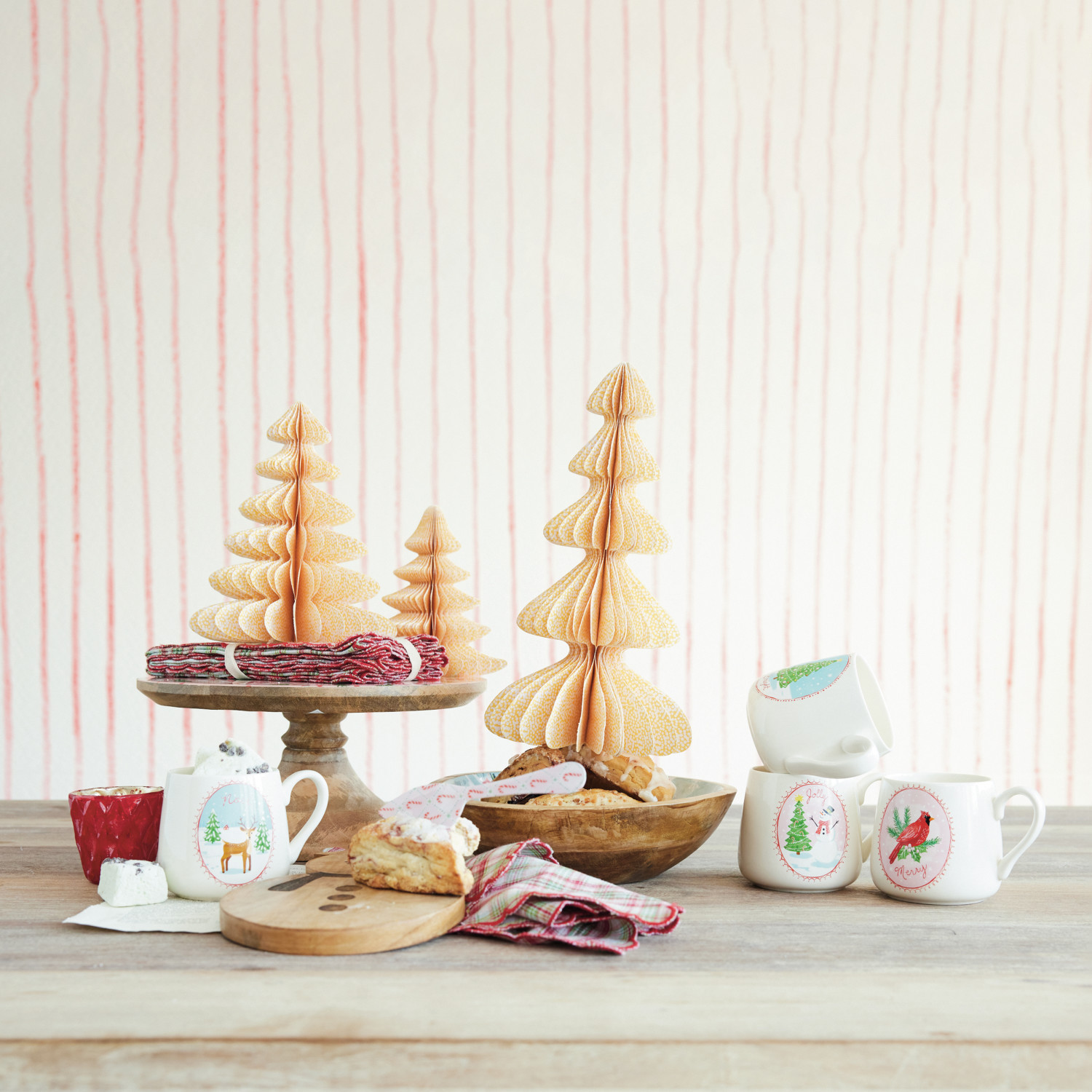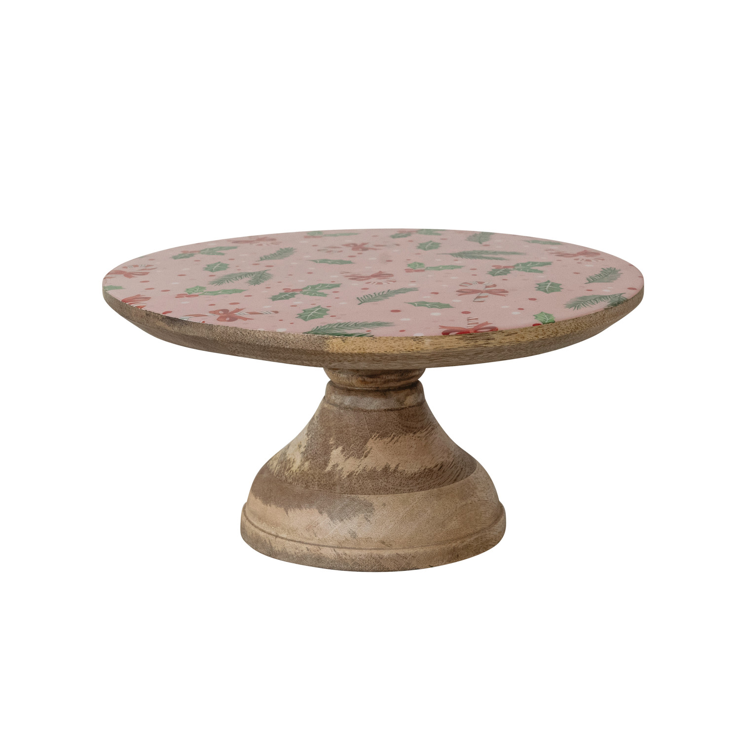 Catalog Name: 11-3/4" Round x 5-3/4"H Enameled Mango Wood Pedestal w/ Holiday Pattern, Multi Color & Natural ©