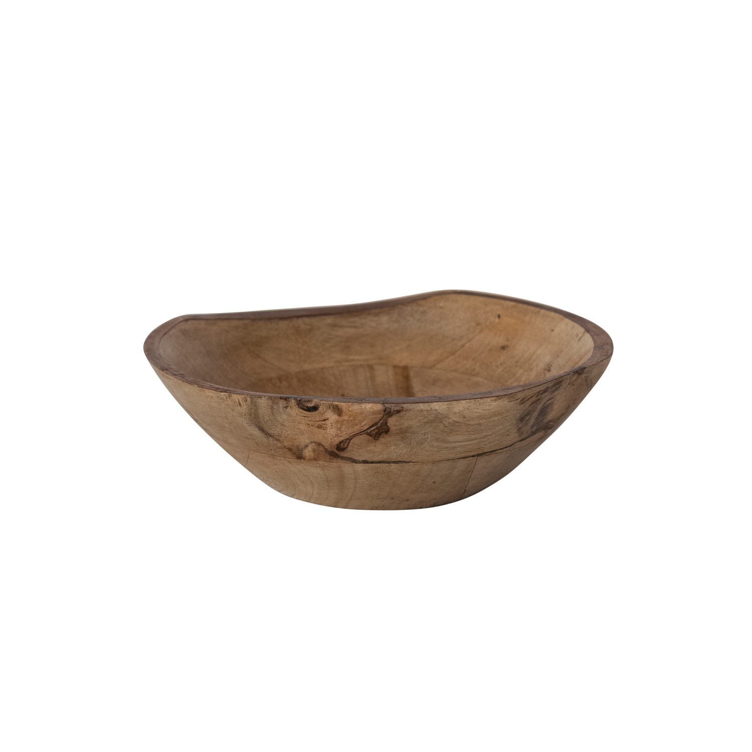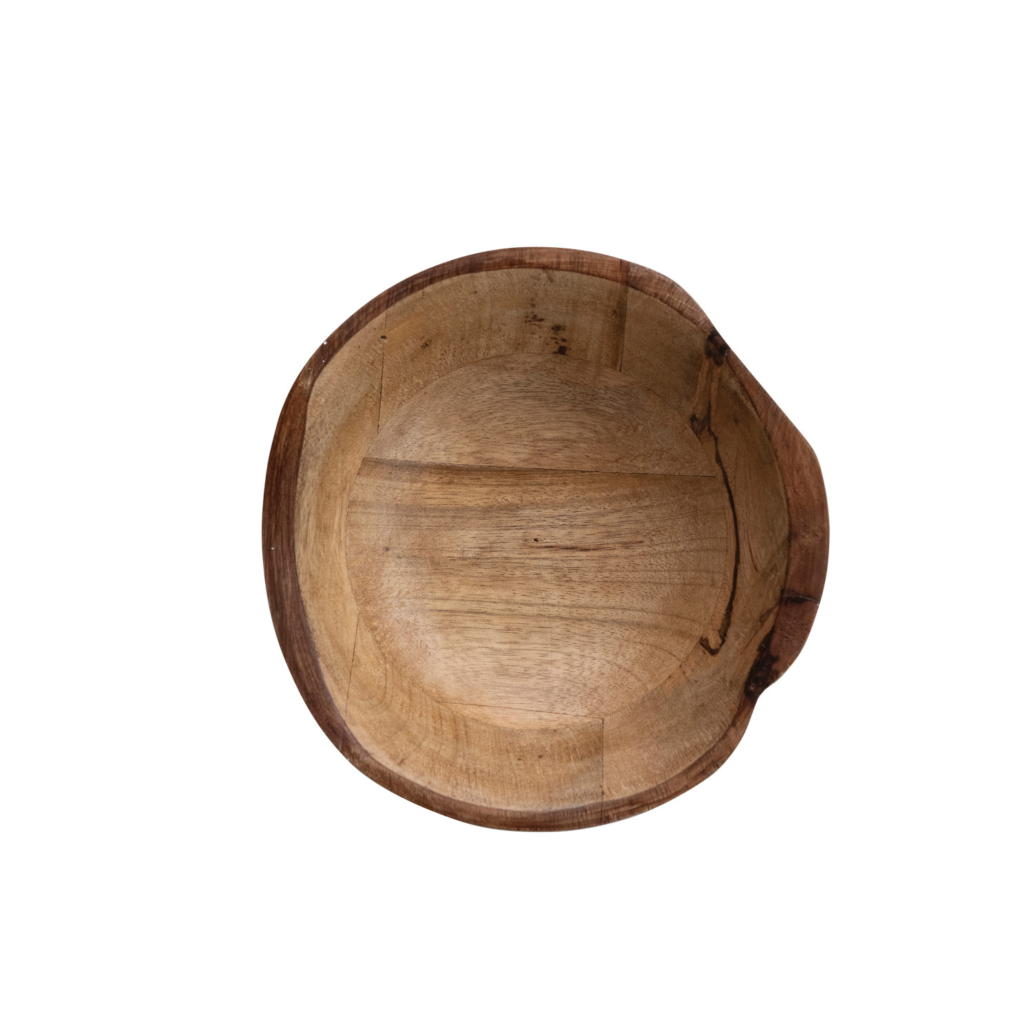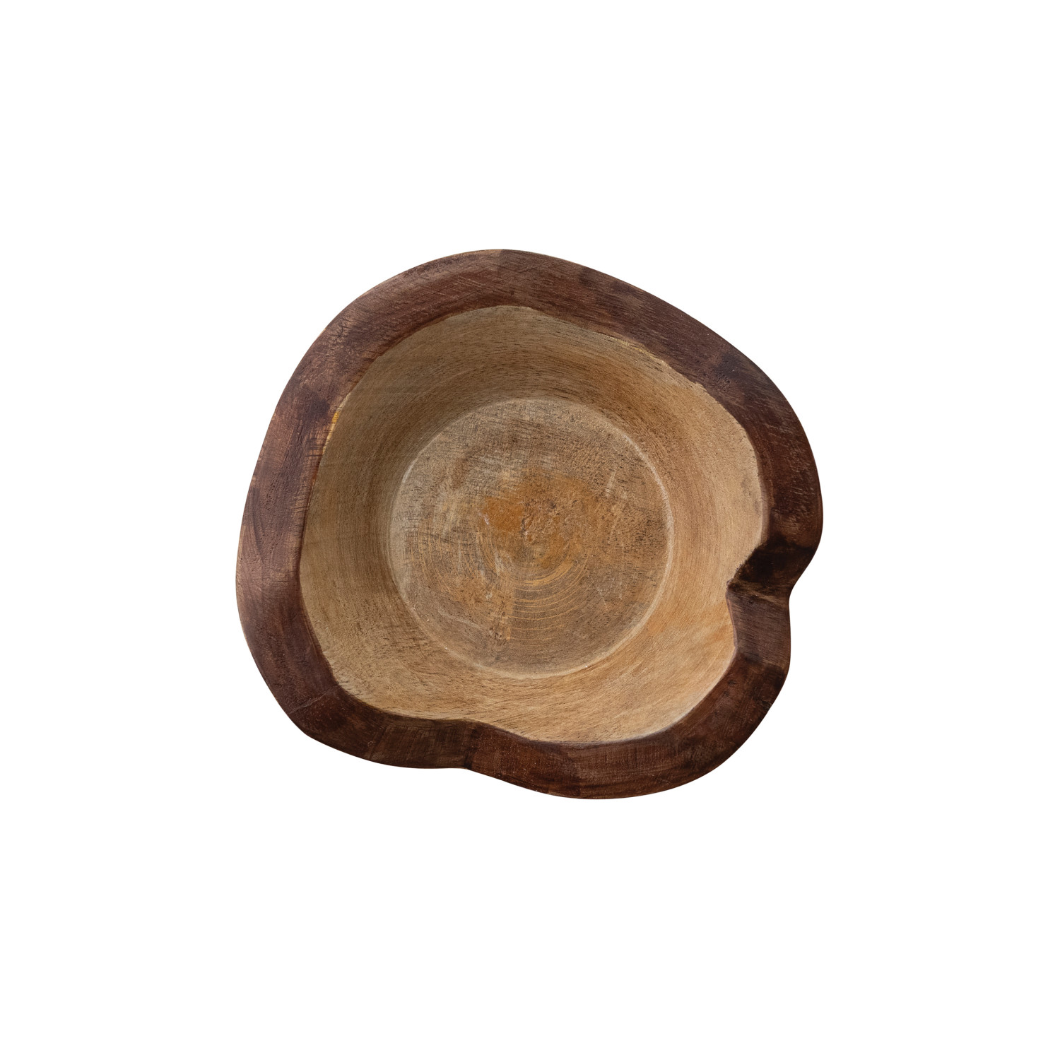 Catalog Name: Approximately 7" Round x 2-1/4"H & 5" Round x 1-1/4"H Hand-Carved Mango Wood Bowls w/ Live Edges, Natural, Set of 2 (Each One Will Vary)