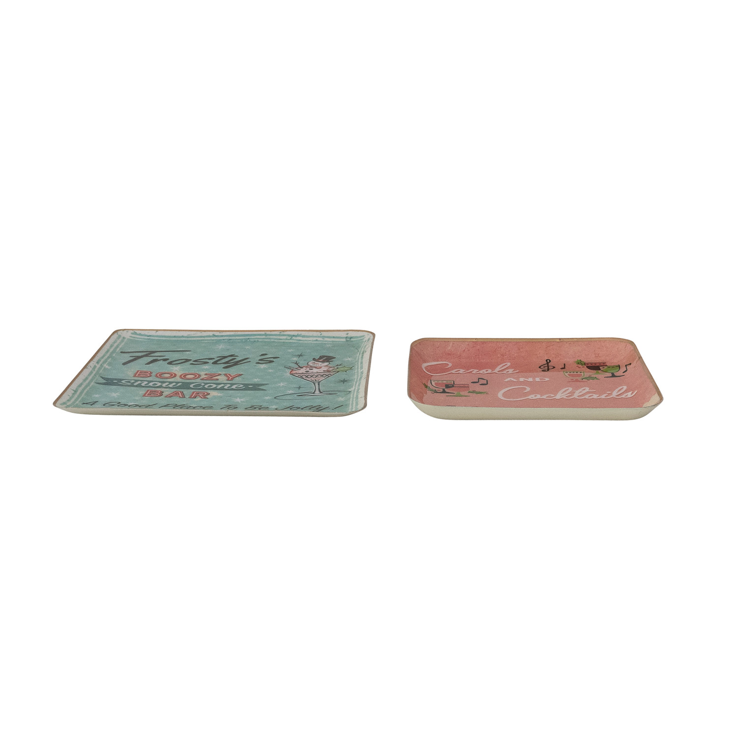 Enameled Metal Trays with Holiday Bar Images & Sayings, Set of 2 ©