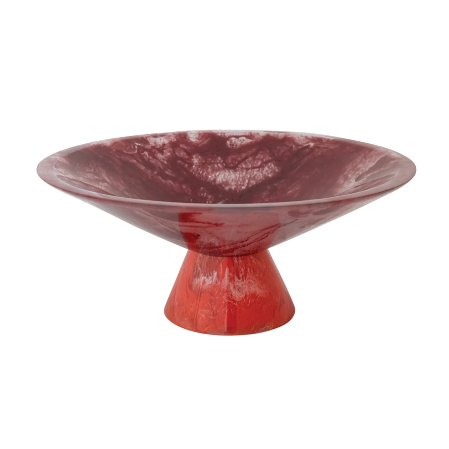 Marbled Resin Footed Bowl, Red (Each One Will Vary)