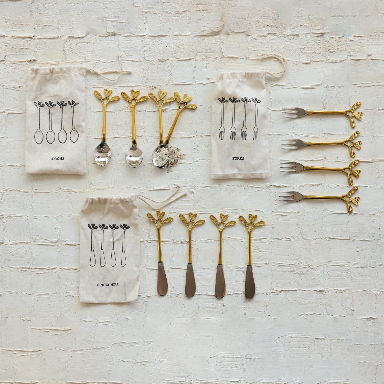 Stainless Steel & Brass Canape Knives, Set of 4 in Drawstring Bag