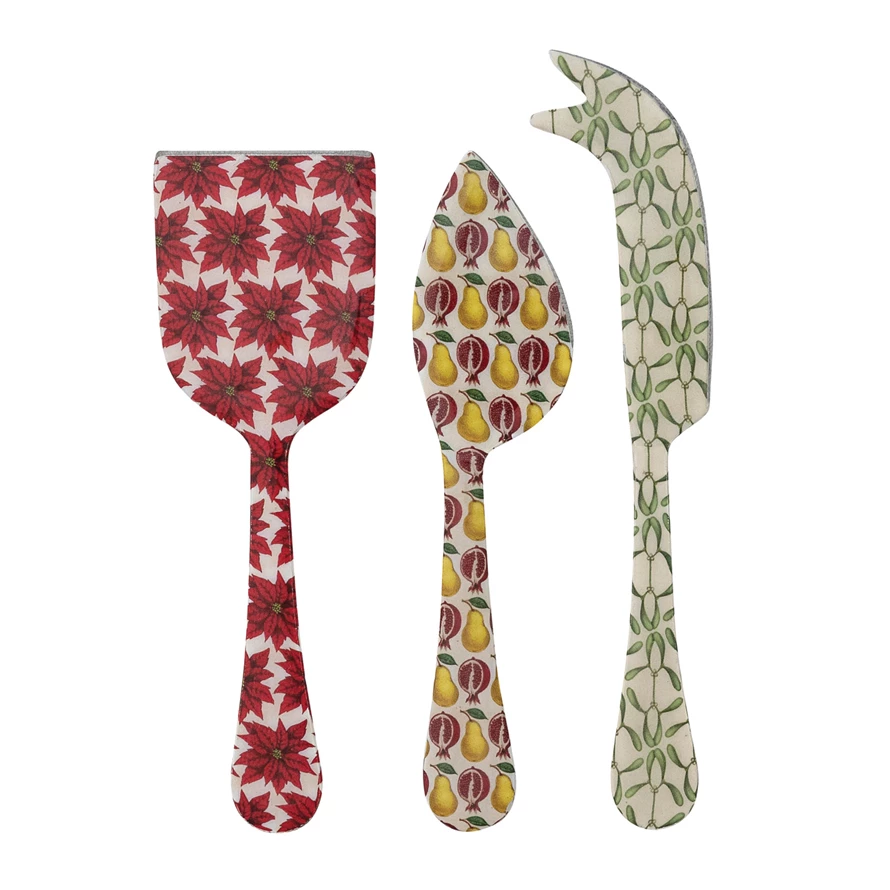 Enameled Stainless Steel Cheese Knives with Seasonal Botanical Patterns, Set of 3 ©