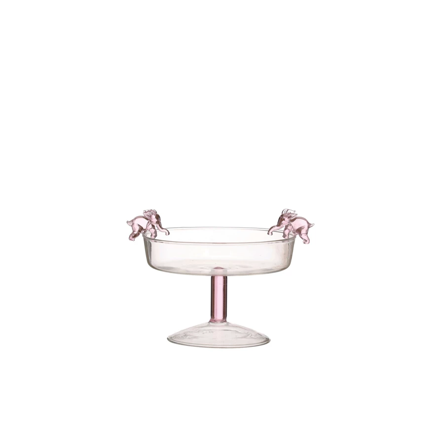 Glass Pedestal Bowl with 3D Pink Elephants