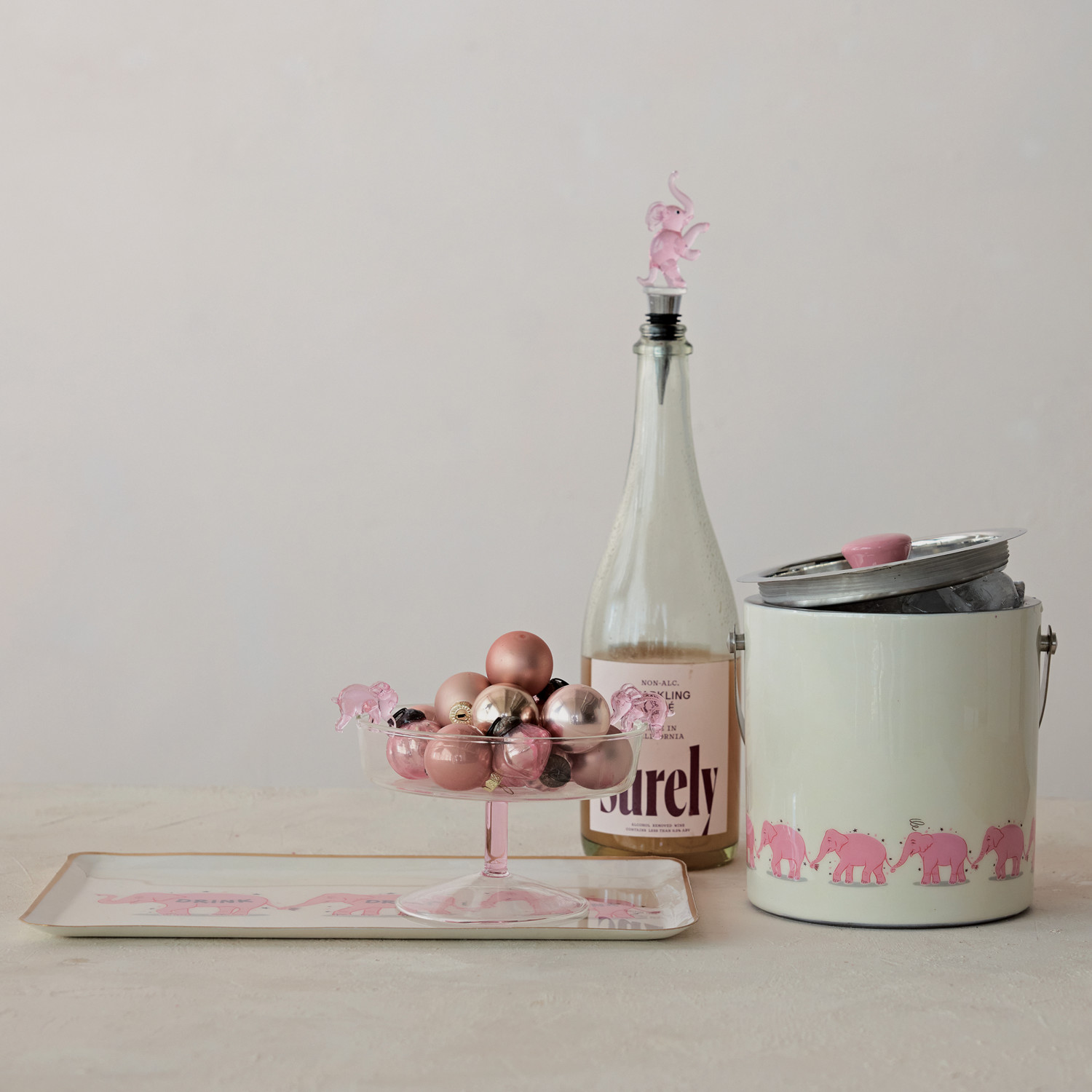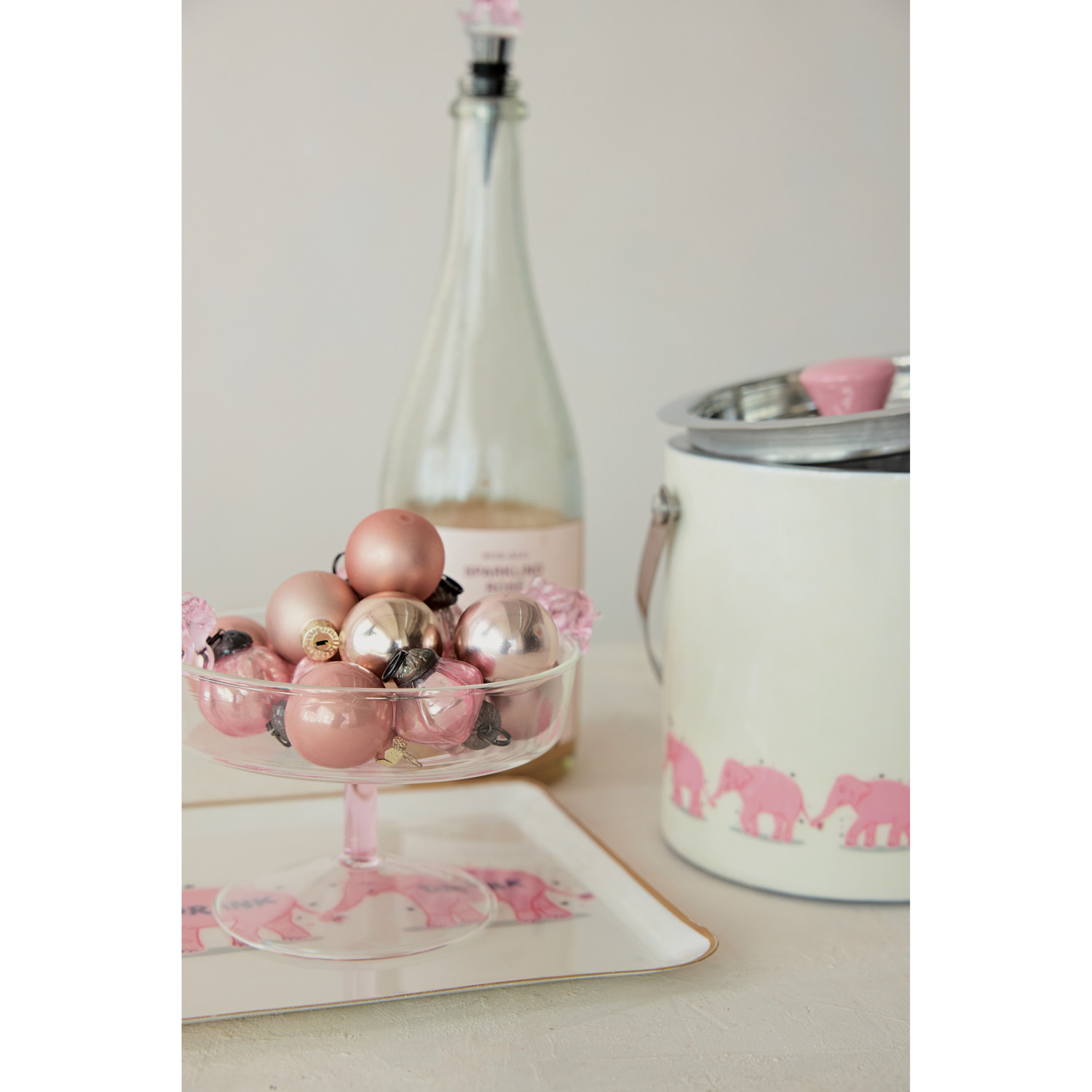 Glass Pedestal Bowl with 3D Pink Elephants