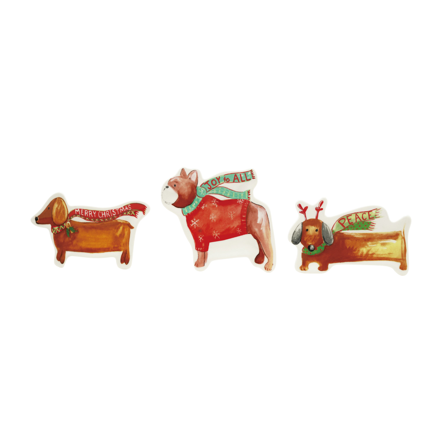 Stoneware Dog Shaped Dish with Scarf & Saying, 3 Styles ©