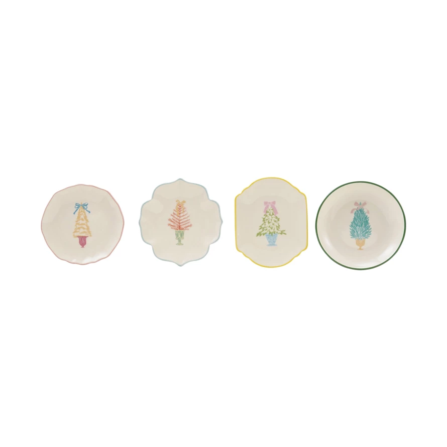 Catalog Name: 4"L x 4"W Stoneware Shaped Dish w/ Tree & Colored Edge, Multi Color, 4 Styles ©
