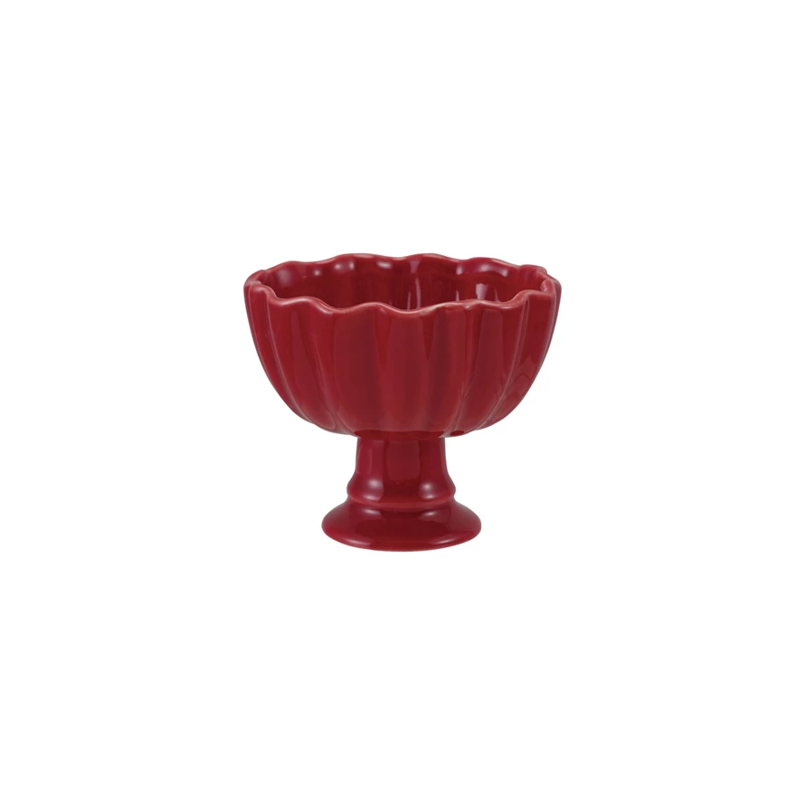 Stoneware Footed Scalloped Bowl, Red (Each One Will Vary)