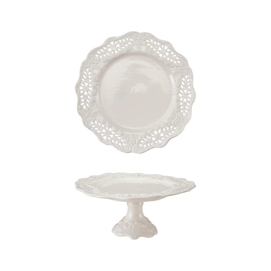Stoneware Scalloped Pedestal with Pierced Lace Pattern, White