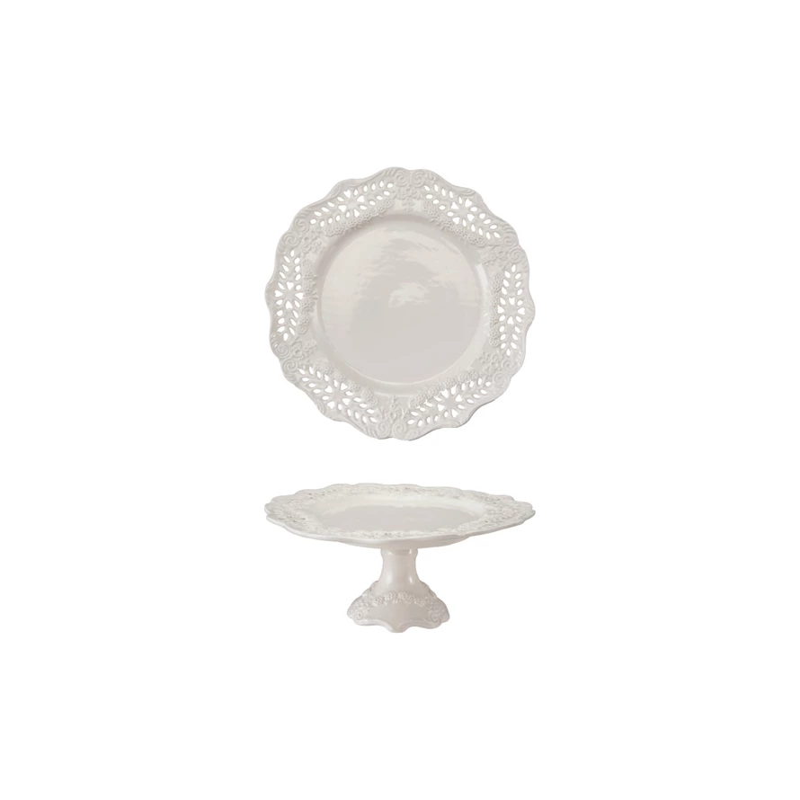 Stoneware Scalloped Pedestal with Pierced Lace Pattern, White