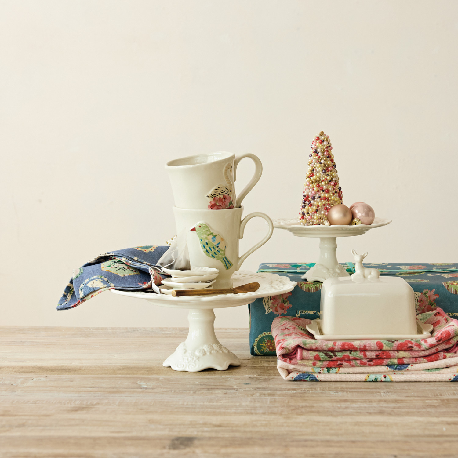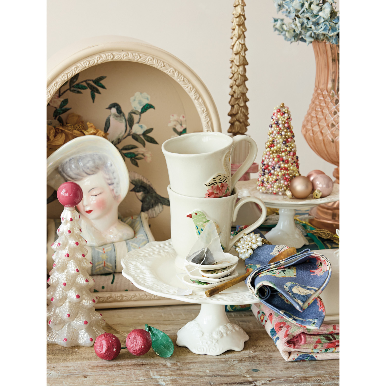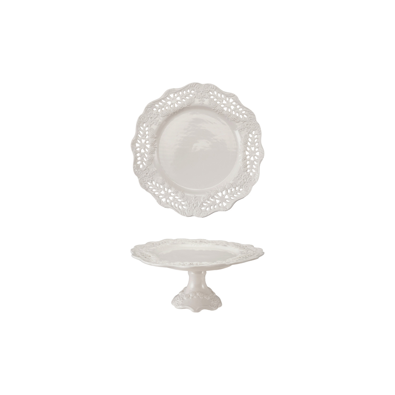 Stoneware Scalloped Pedestal with Pierced Lace Pattern, White