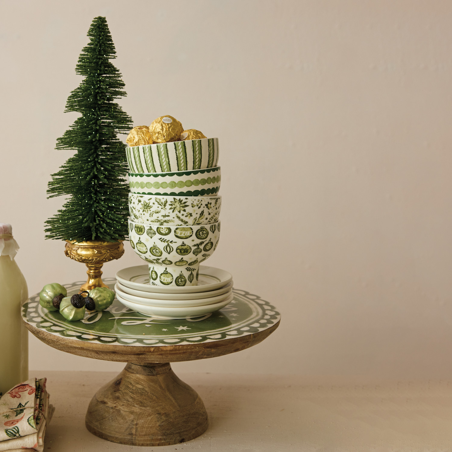 Catalog Name: 5" Round Stoneware Dish w/ Holiday Design & Saying, Green & Cream Color, 4 Styles ©