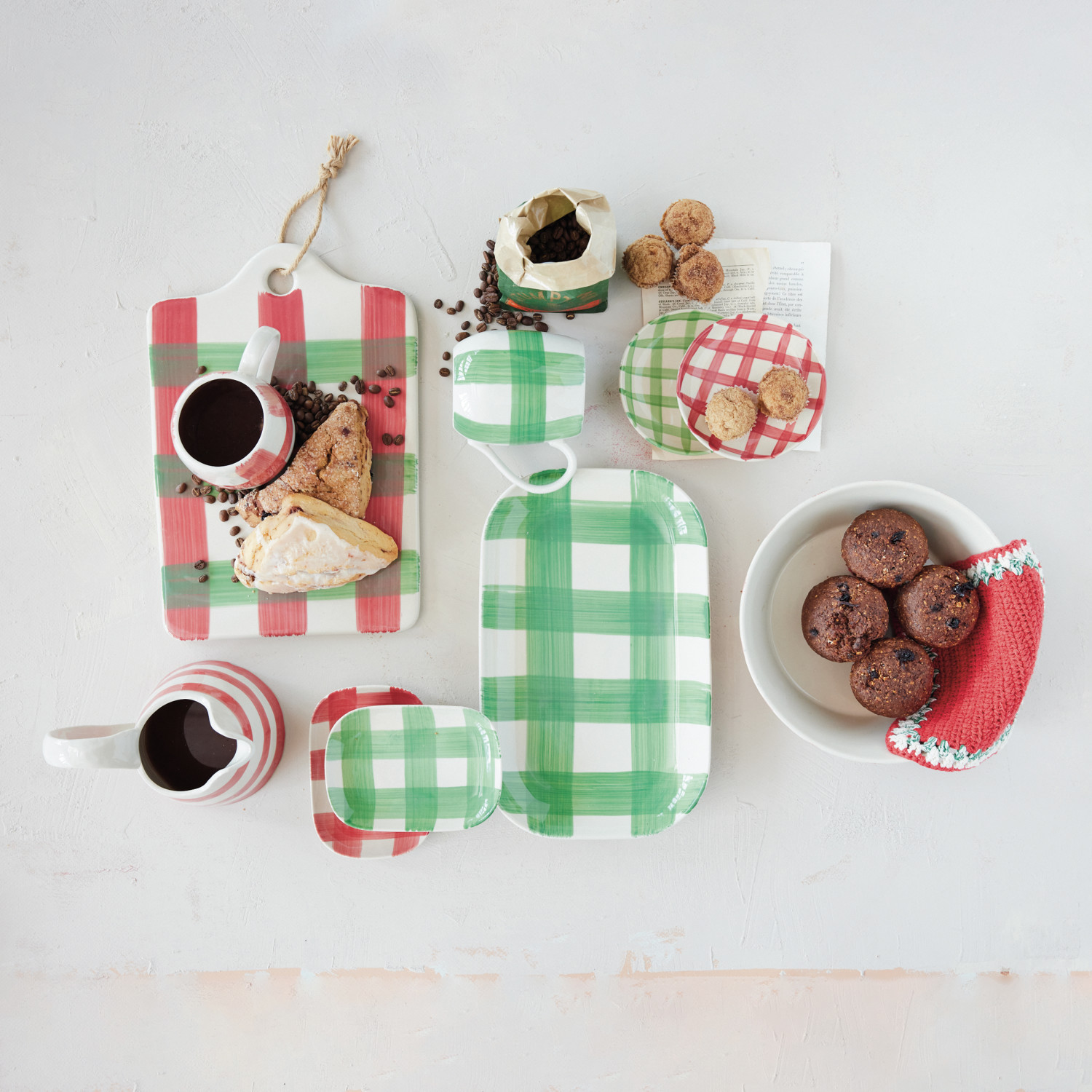 Hand-Painted Stoneware Dish with Plaid Pattern, 2 Colors (Each One Will Vary)