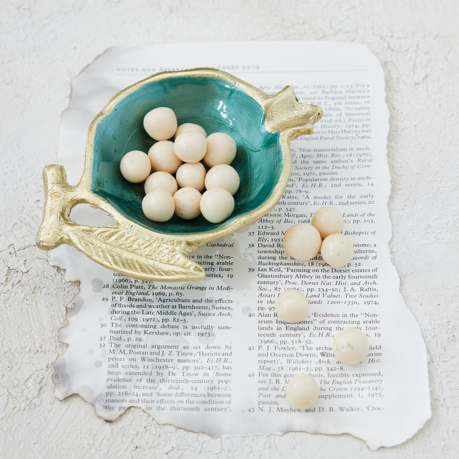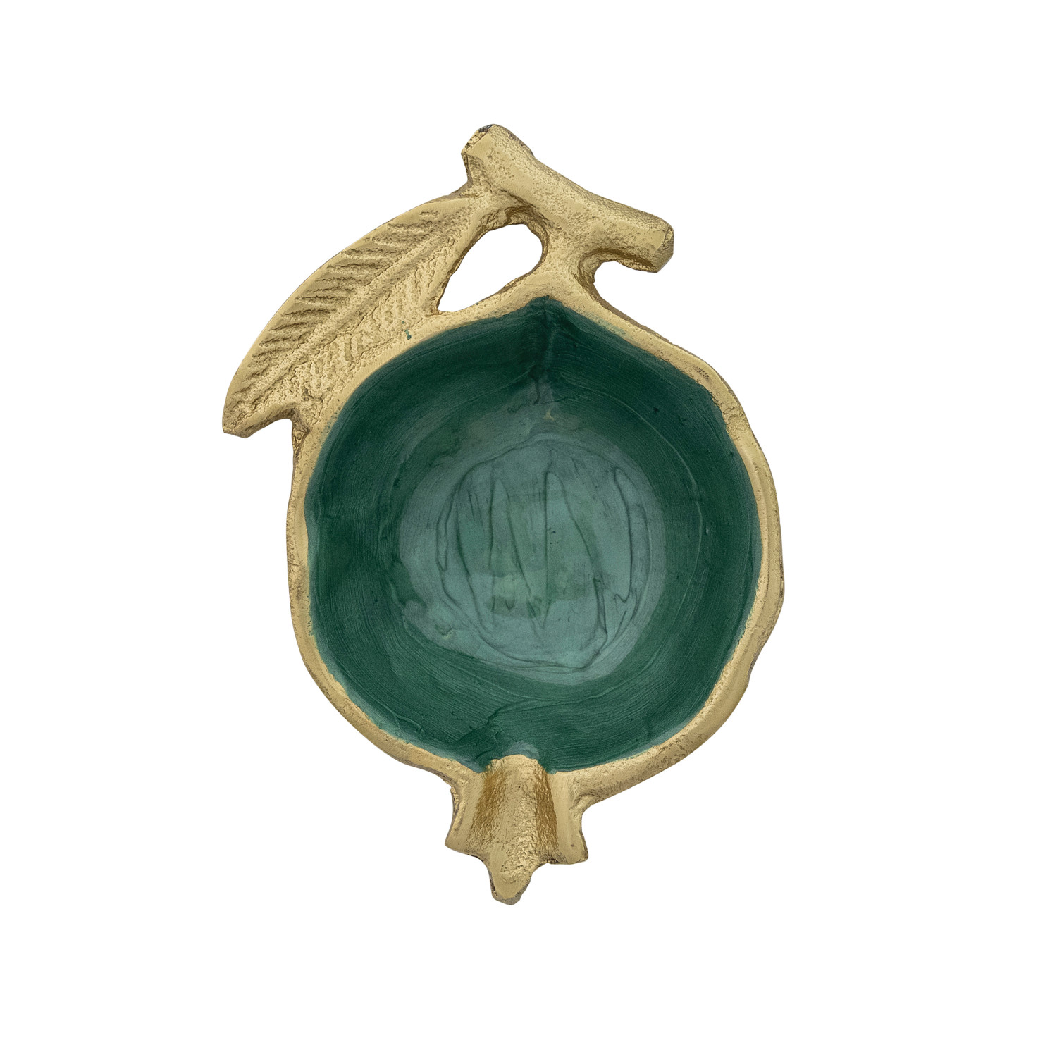 Enameled Cast Aluminum Pomegranate Shaped Dish, Green & Gold Finish