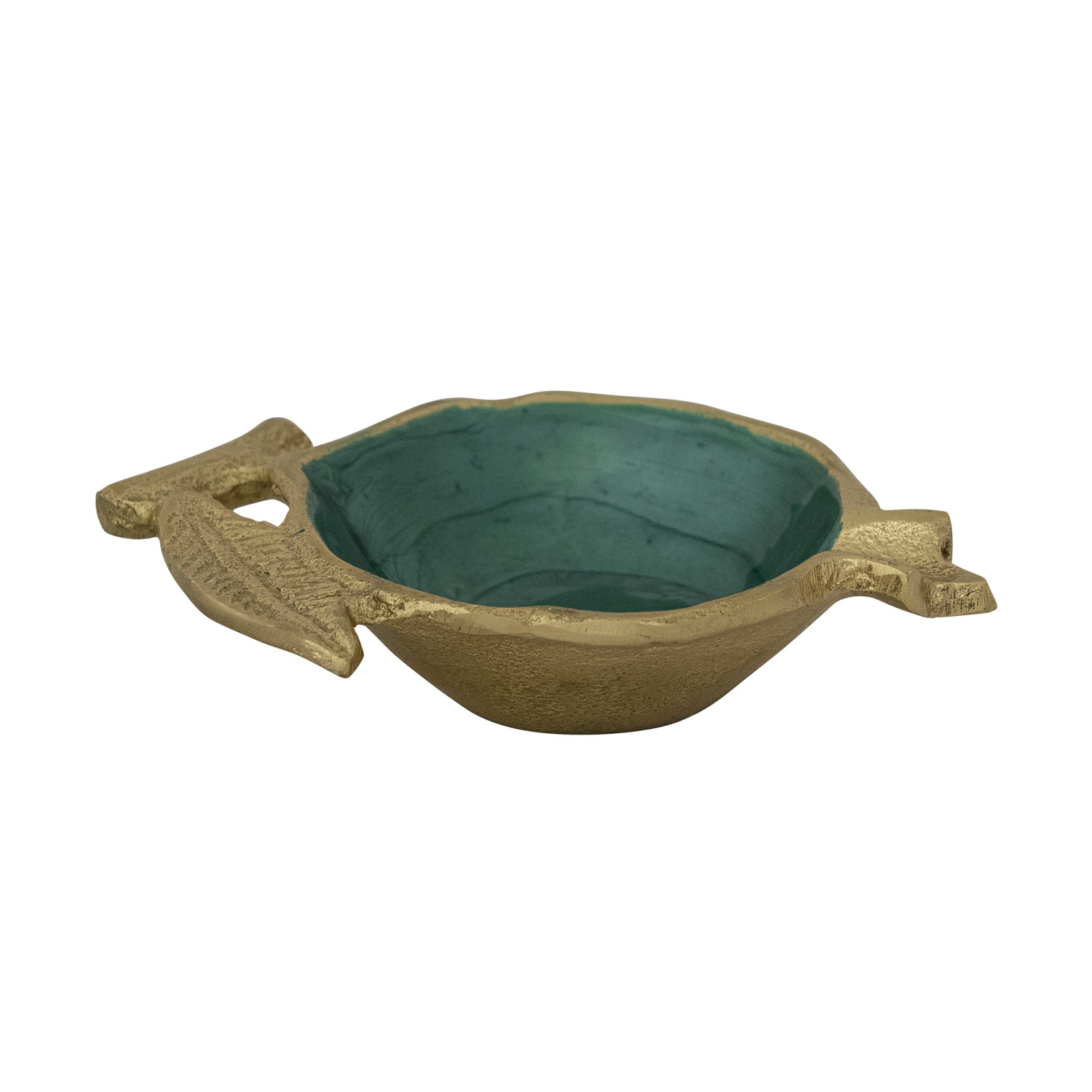 Catalog Name: 6-1/4"L x 4-1/4"W Enameled Cast Aluminum Pomegranate Shaped Dish, Green & Gold Finish