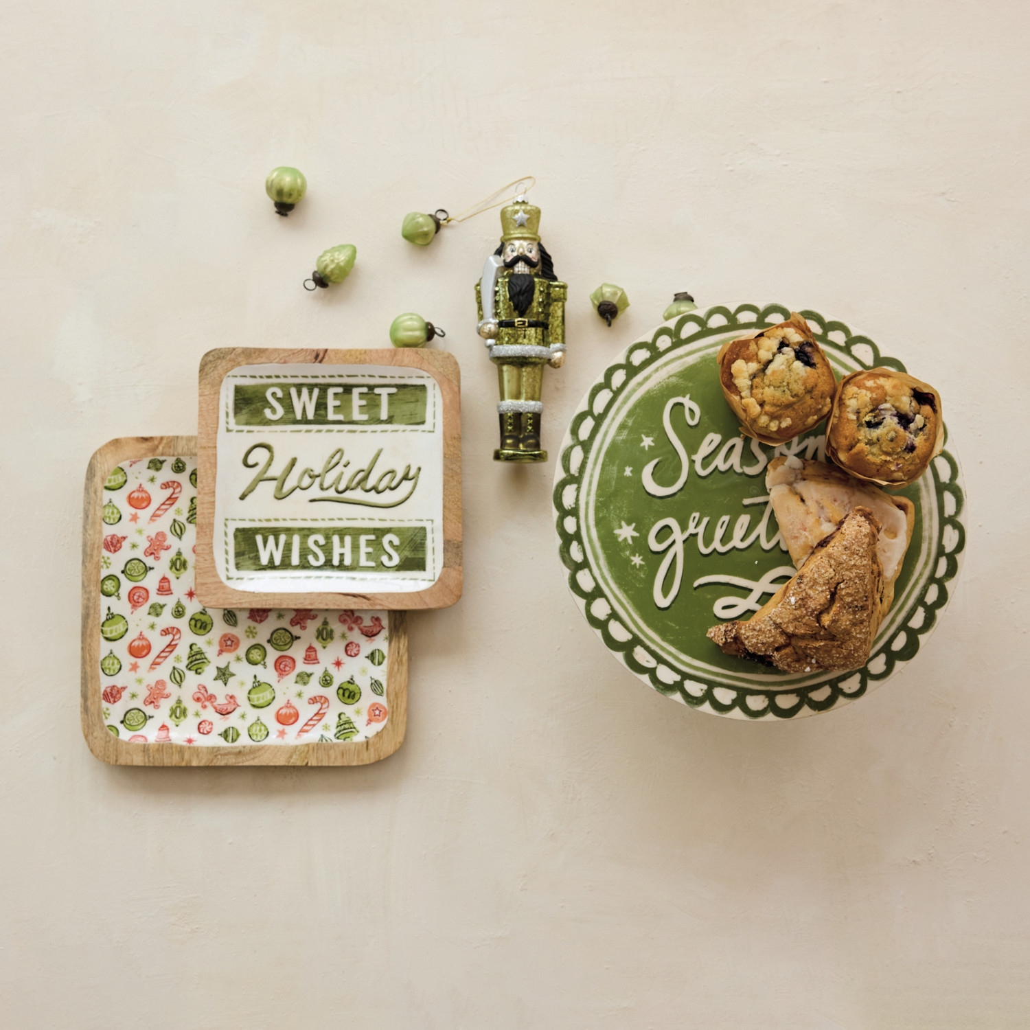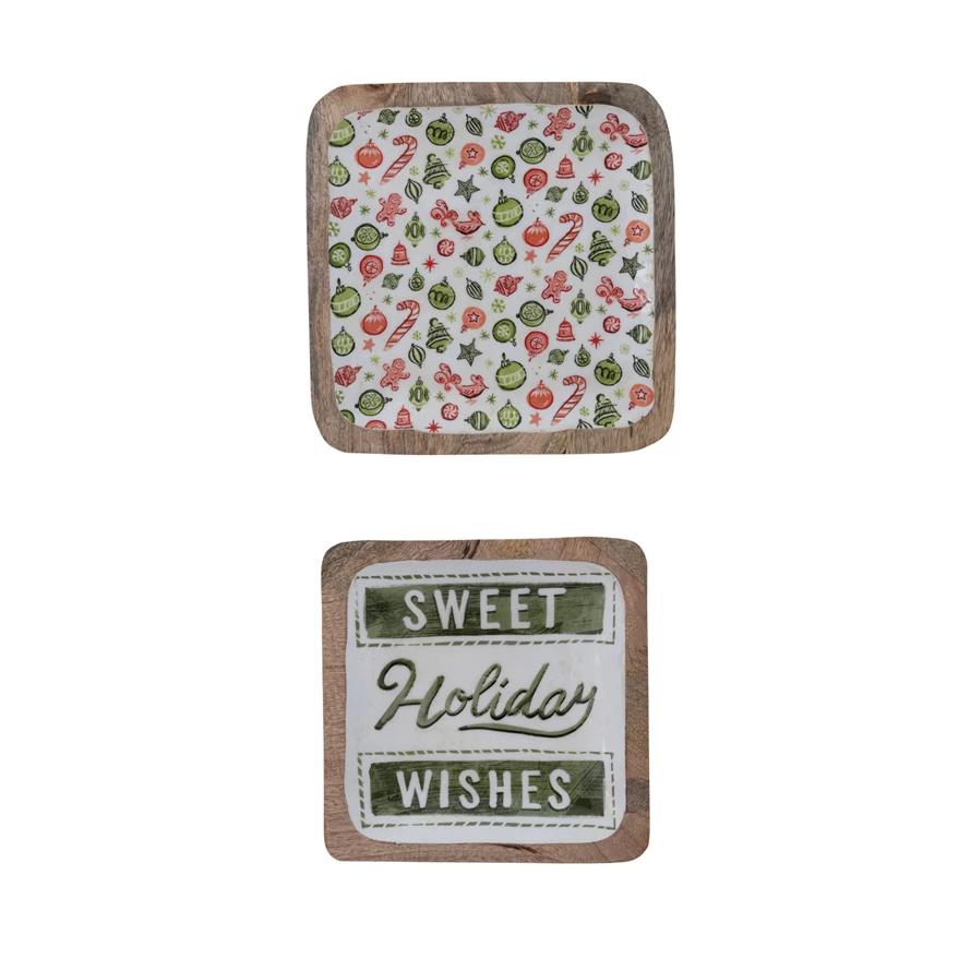 Enameled Mango Wood Trays with Holiday Pattern/"Sweet Holiday Wishes", Set of 2 ©