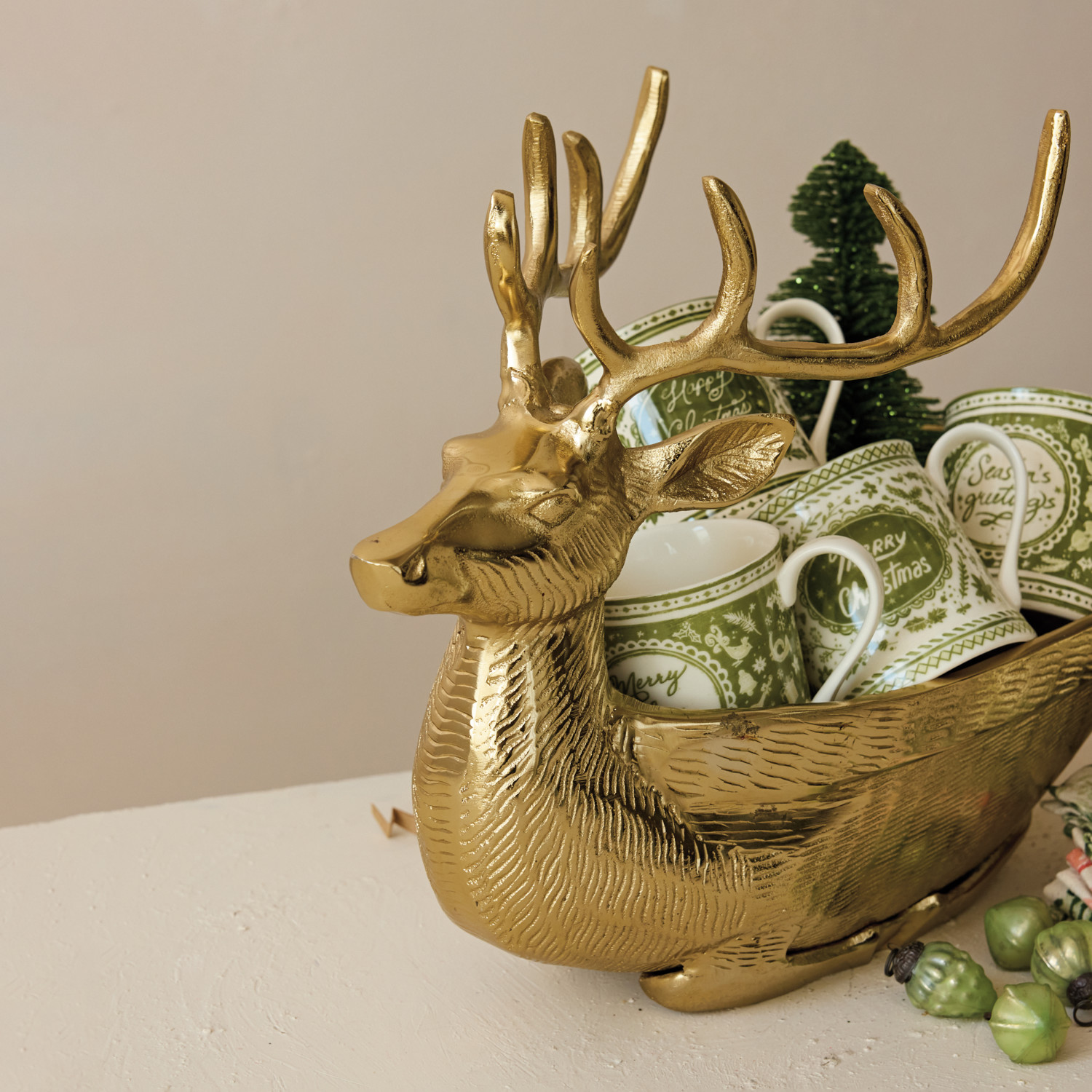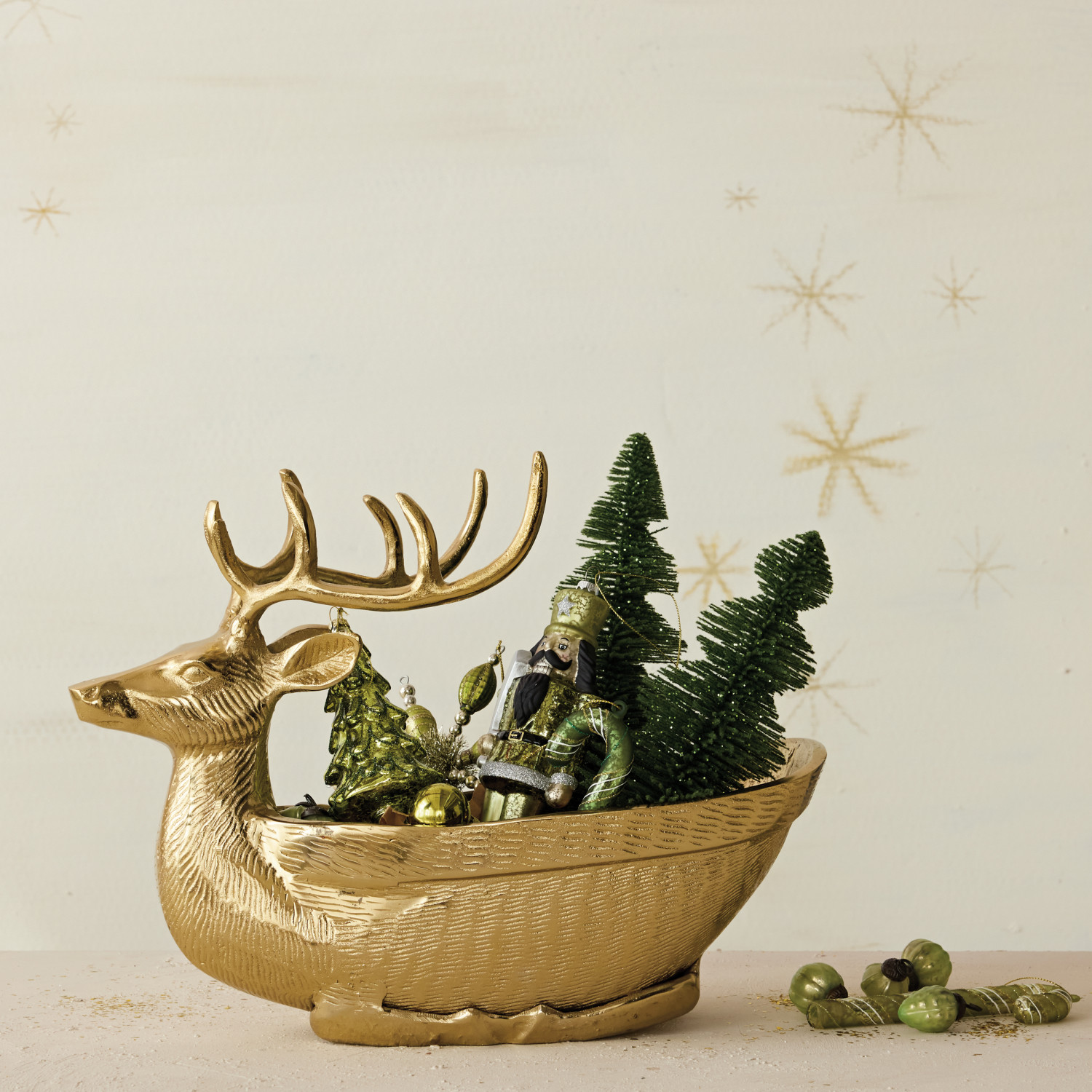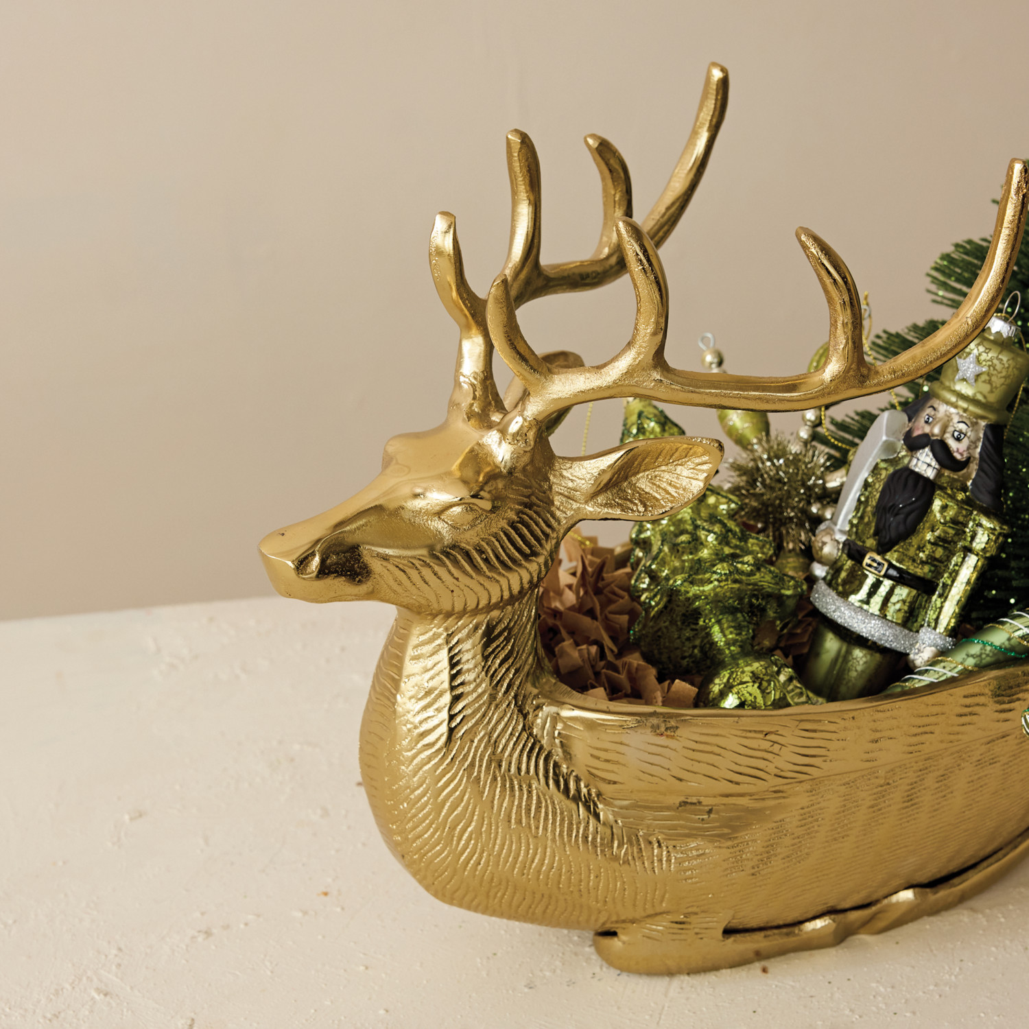 Cast Aluminum Reindeer Shaped Bowl/Bottle Holder, Gold Finish