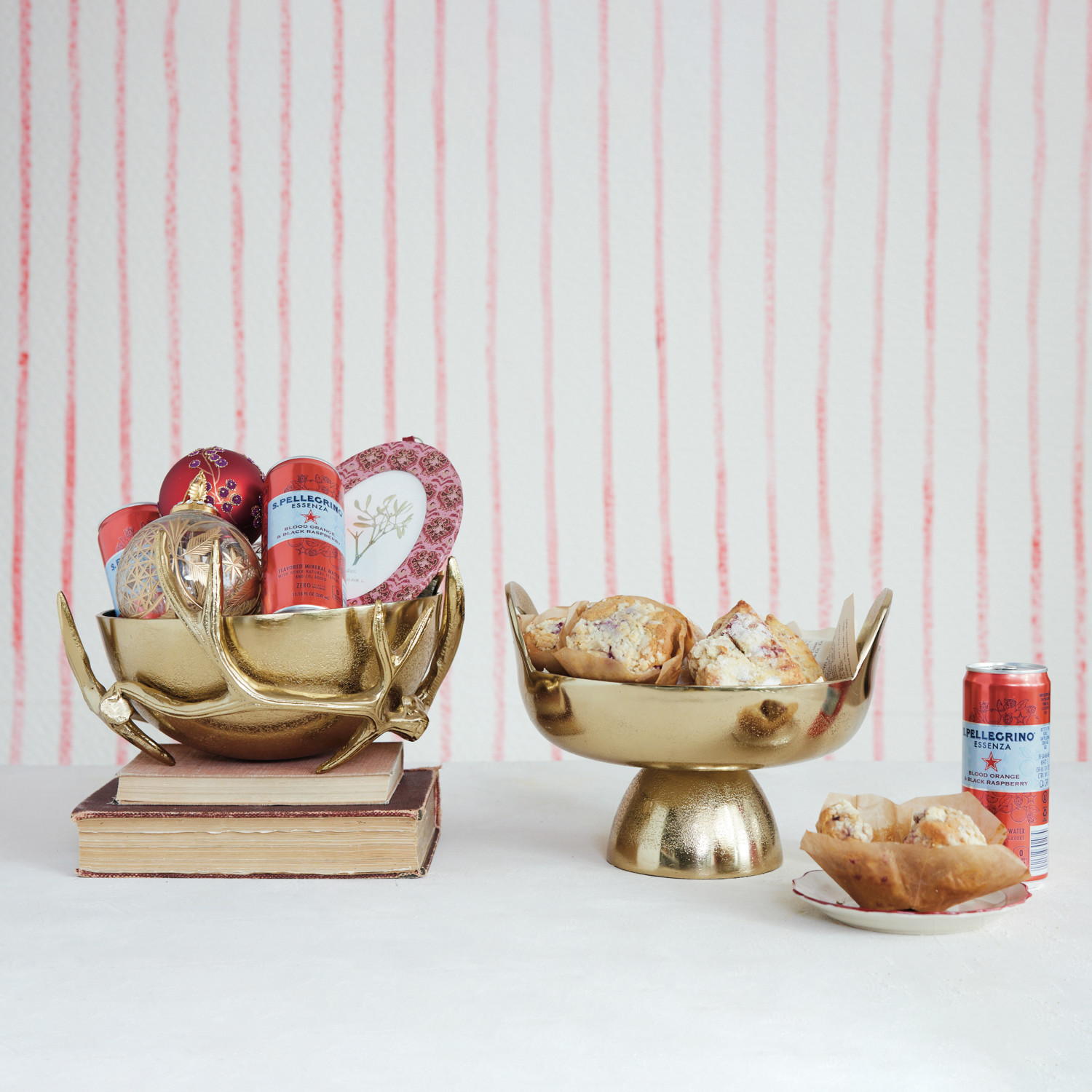 Catalog Name: 11-1/2"L x 11"W x 5"H Cast Aluminum Antler Shaped Stand w/ 9-1/2" Round x 4-1/4"H Removable Bowl, Gold Finish, Set of 2