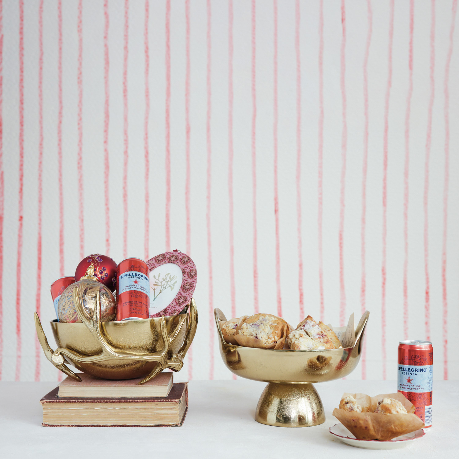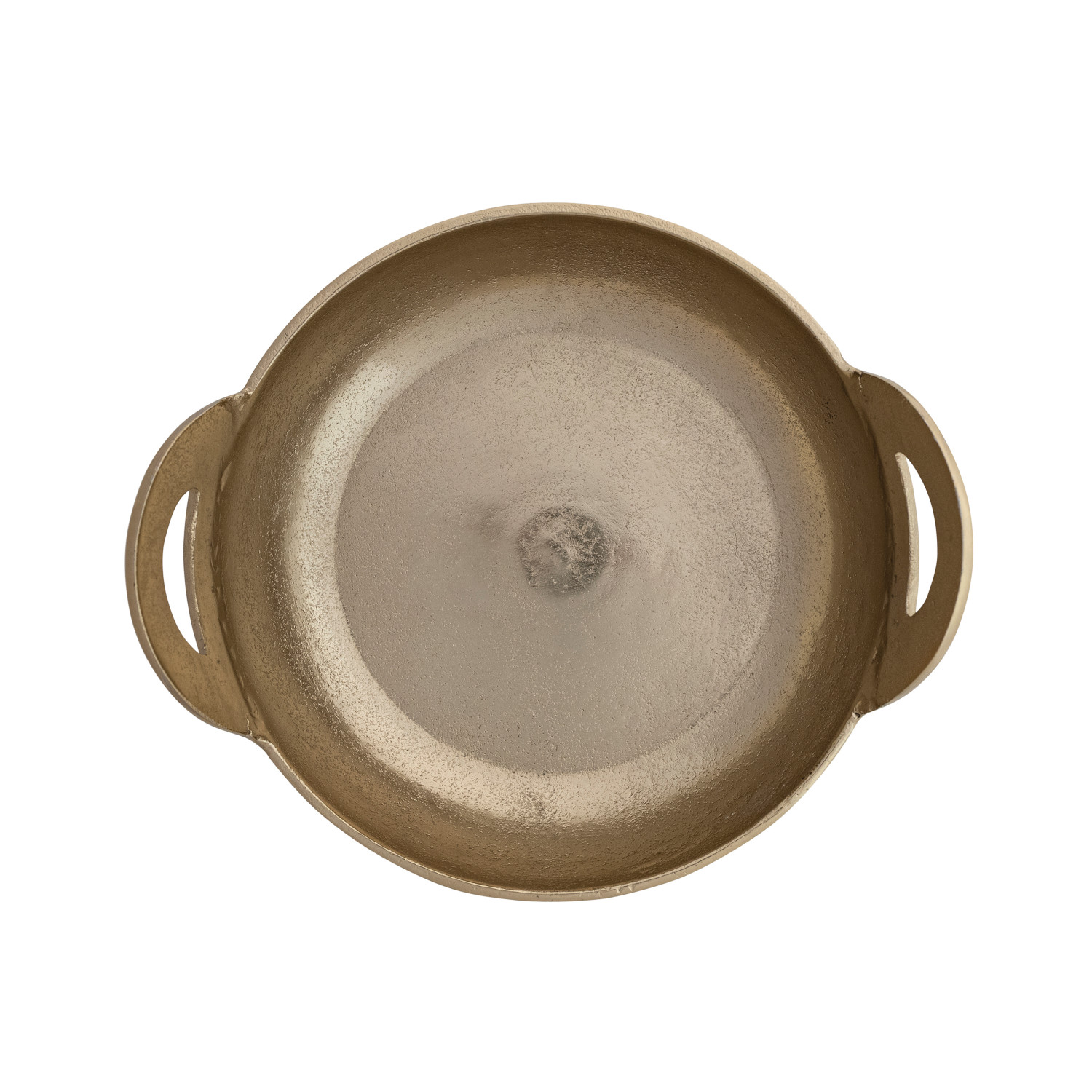 Cast Aluminum Footed Bowl with Handles, Gold Finish
