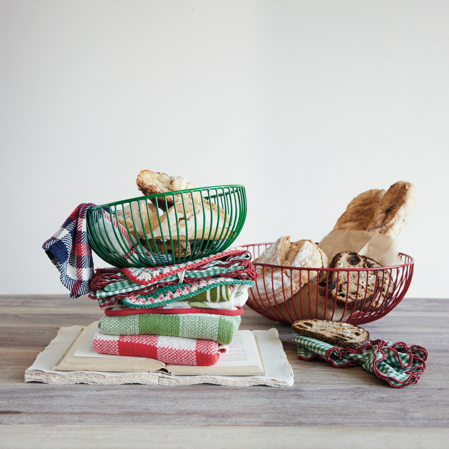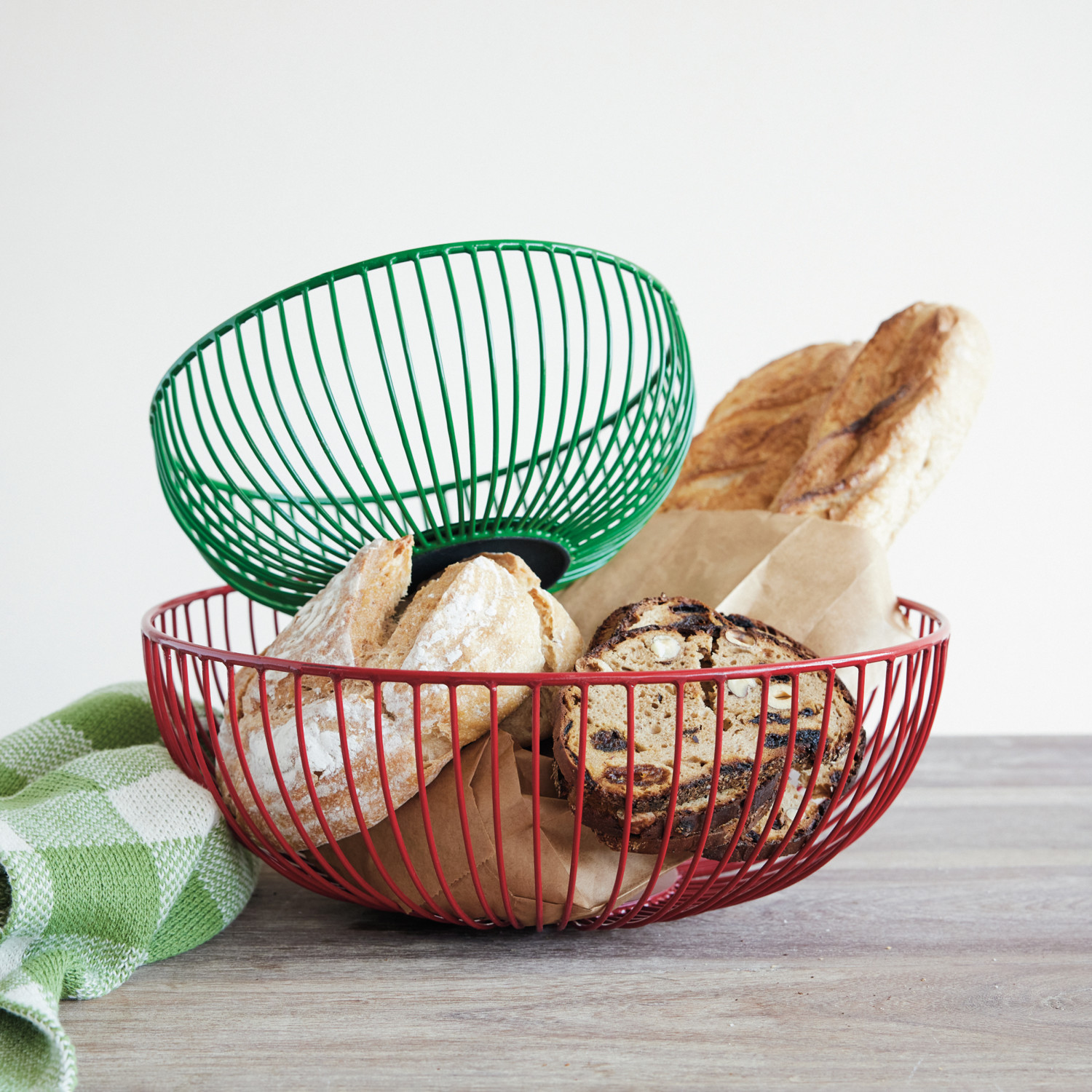 Catalog Name: 14" Round x 5"H & 10" Round x 4"H Metal Wire Baskets, Red & Green, Set of 2