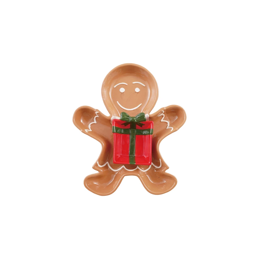 Hand-Painted Ceramic Gingerbread Shaped Plate with Nesting Gift Shaped Dish, Set of 2